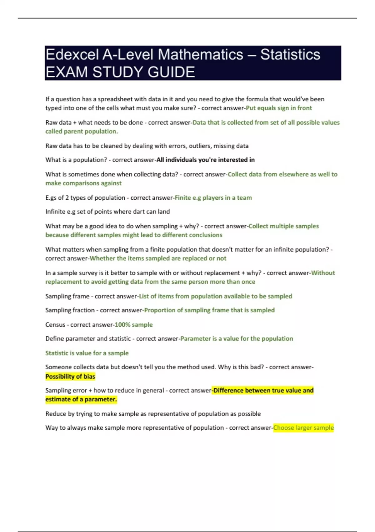 Edexcel A-Level Mathematics – Statistics EXAM STUDY GUIDE