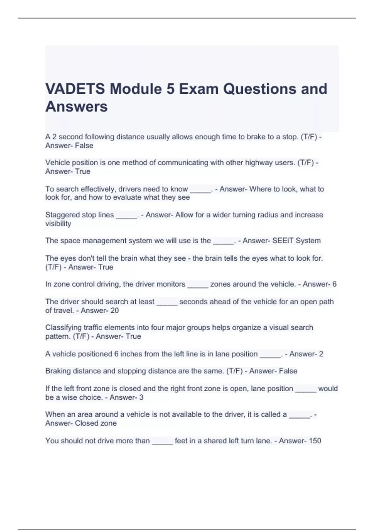 VADETS Module 5 Exam Questions and Answers- Graded A