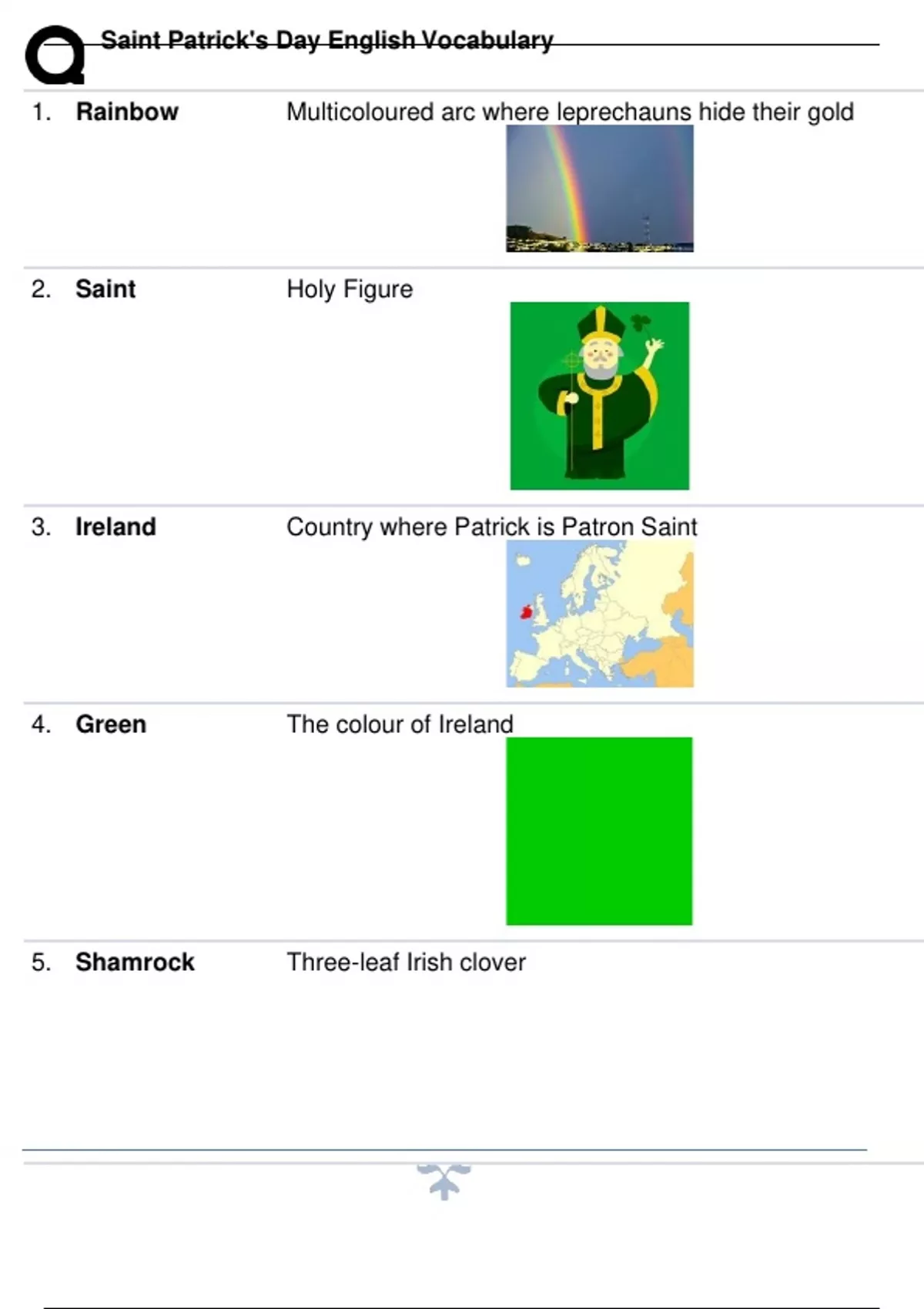 Saint Patrick's Day English Vocabulary.