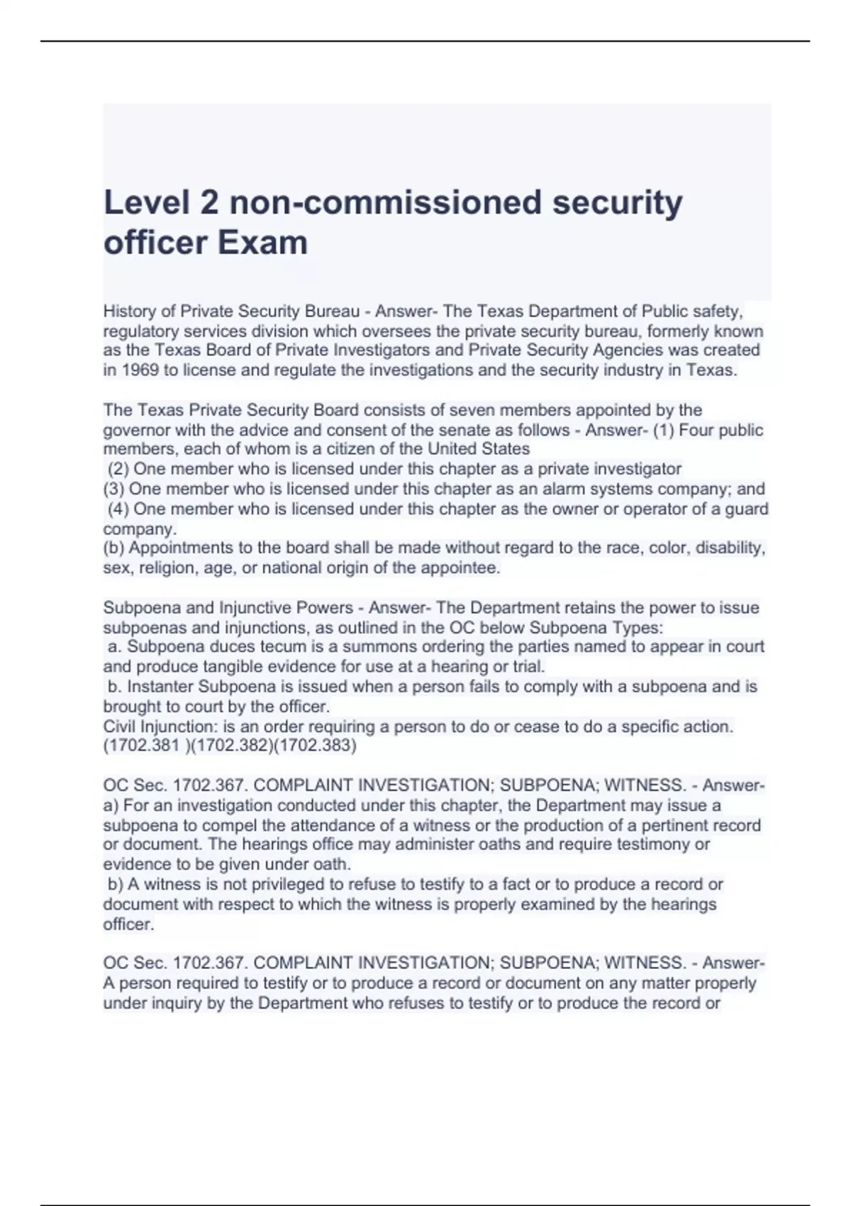 Texas Department of Public Safety Private Security Exam Bundle