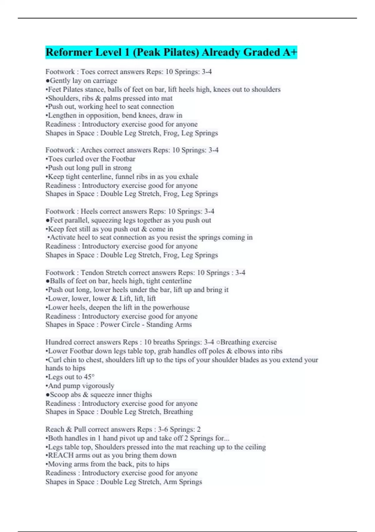 Reformer Level 1 (Peak Pilates) Already Graded A+