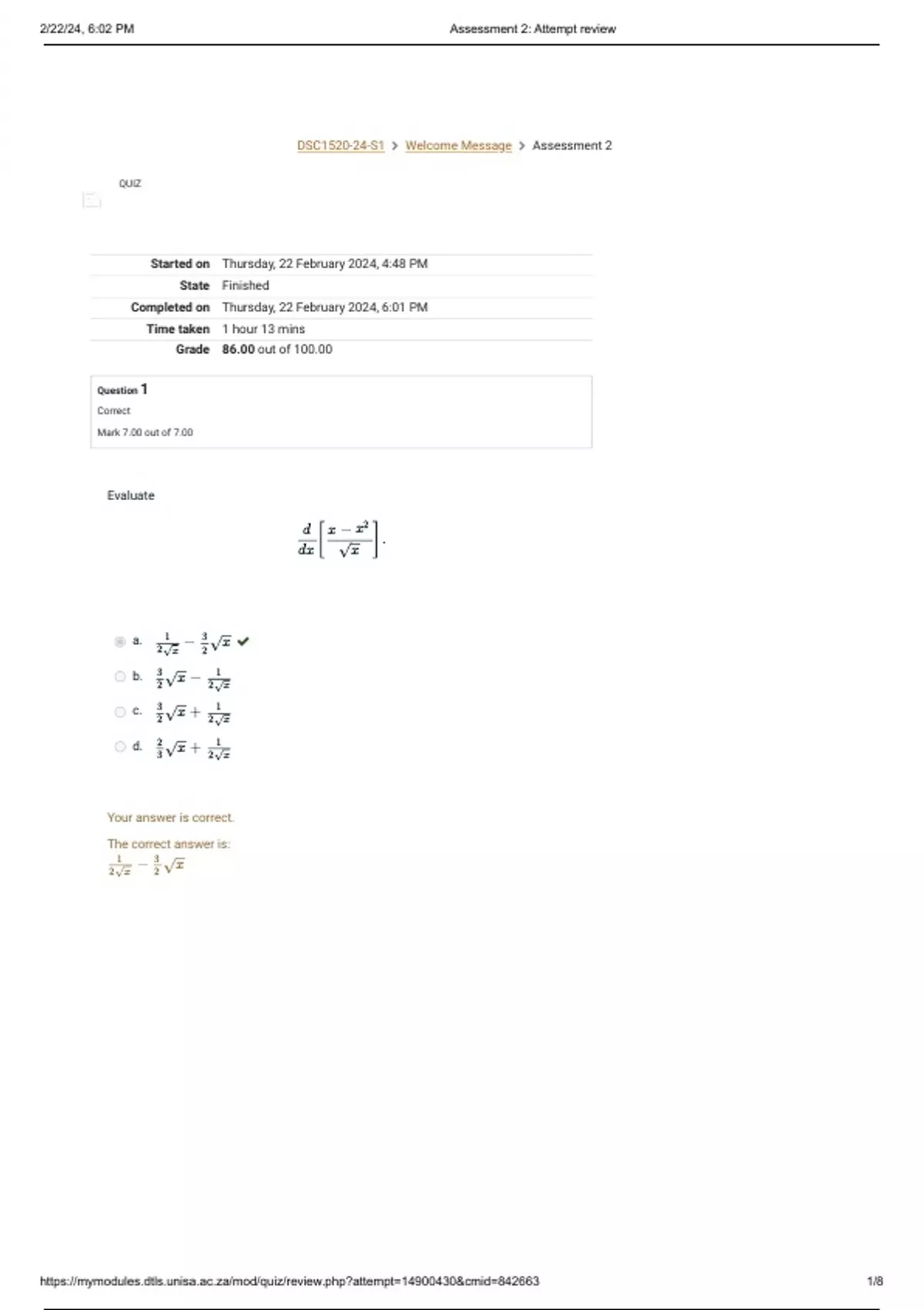 https://mymodules.dtls.unisa.ac.za/mod/quiz/review.php?attempt=14900430&cmid=842663 1/8