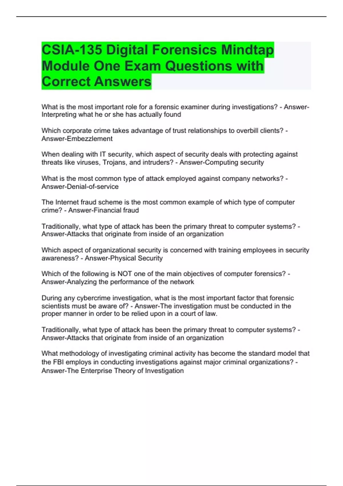 CSIA-135 Digital Forensics Mindtap