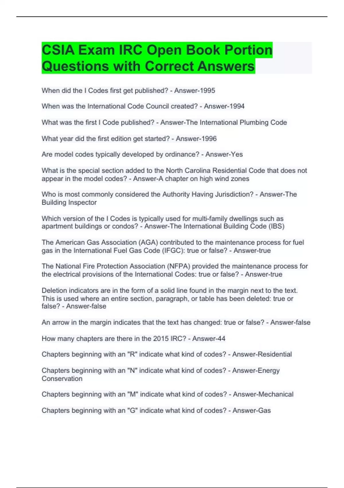 CSIA Exam IRC Open Book Portion Questions with Correct Answers