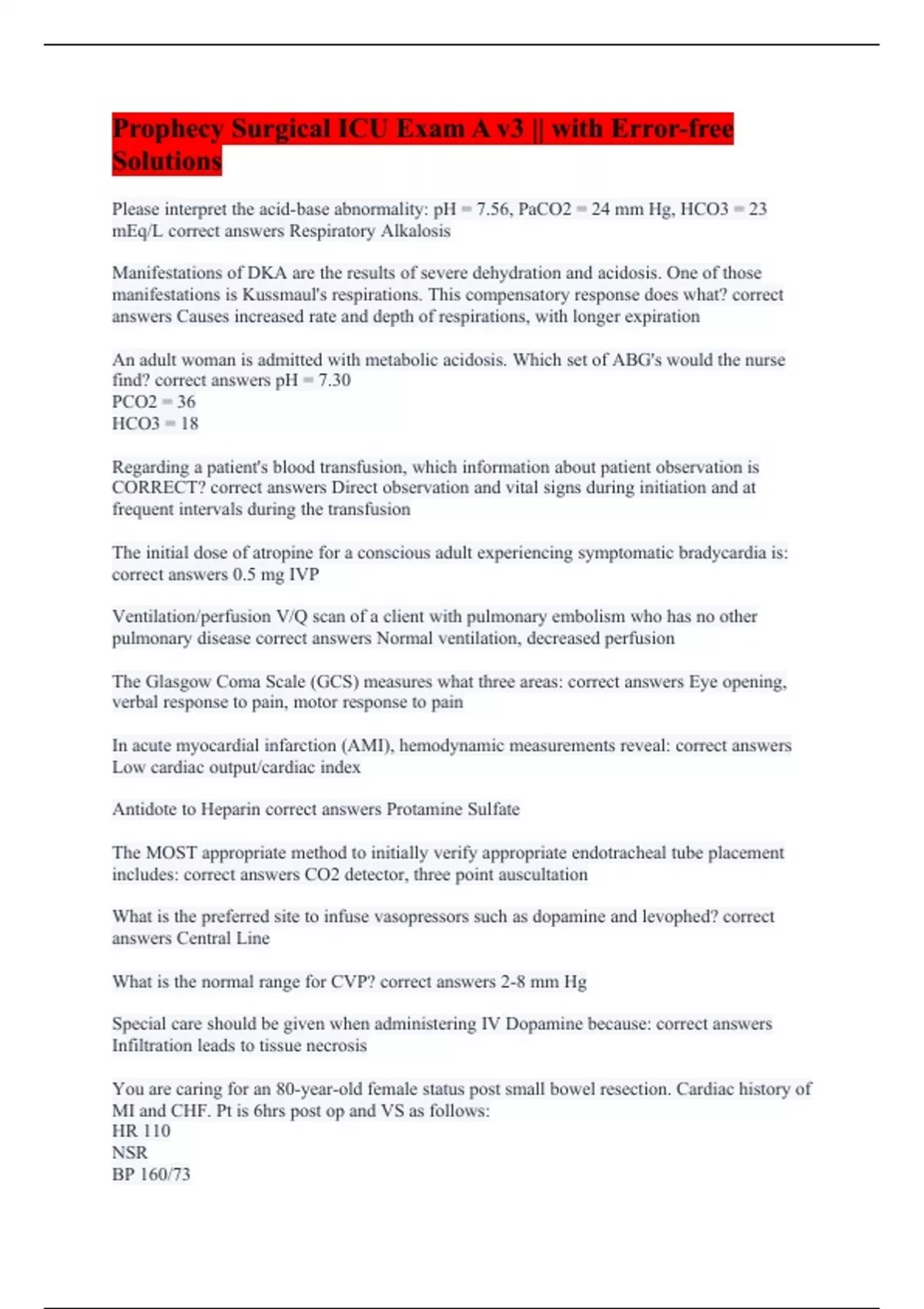 Prophecy Surgical ICU Exam A v3 || with Error-free Solutions