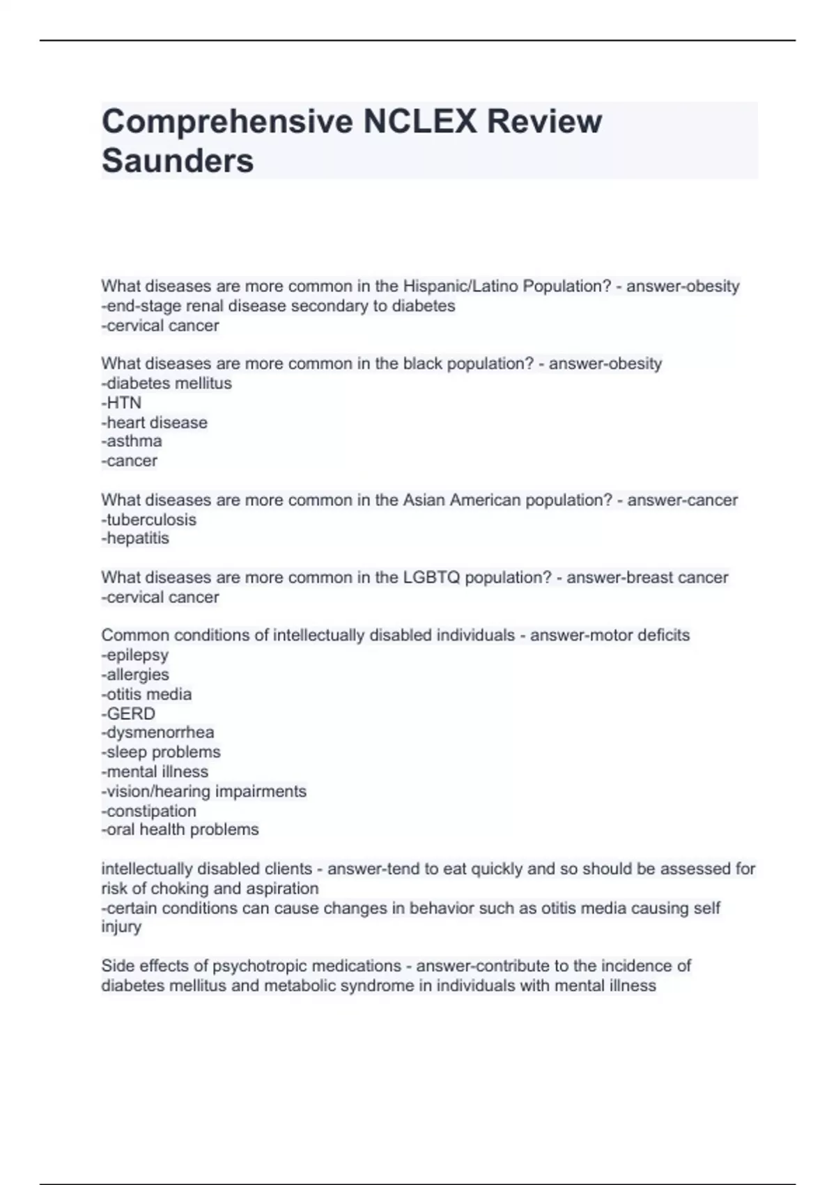 Comprehensive NCLEX Review Saunders Questions and Answers 2024