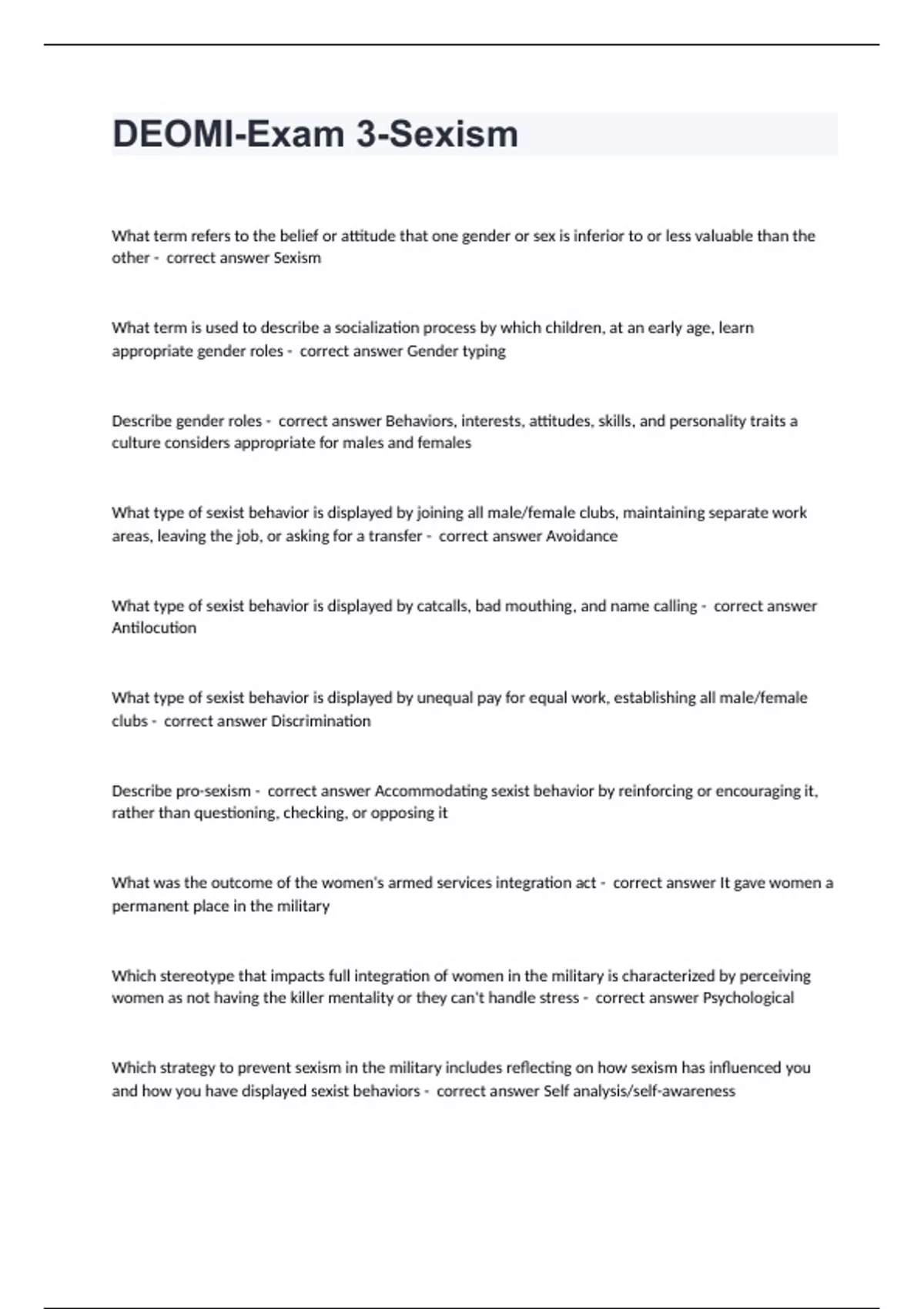 DEOMI-Exam 3-Sexism correctly answered graded A+ 2024/2025