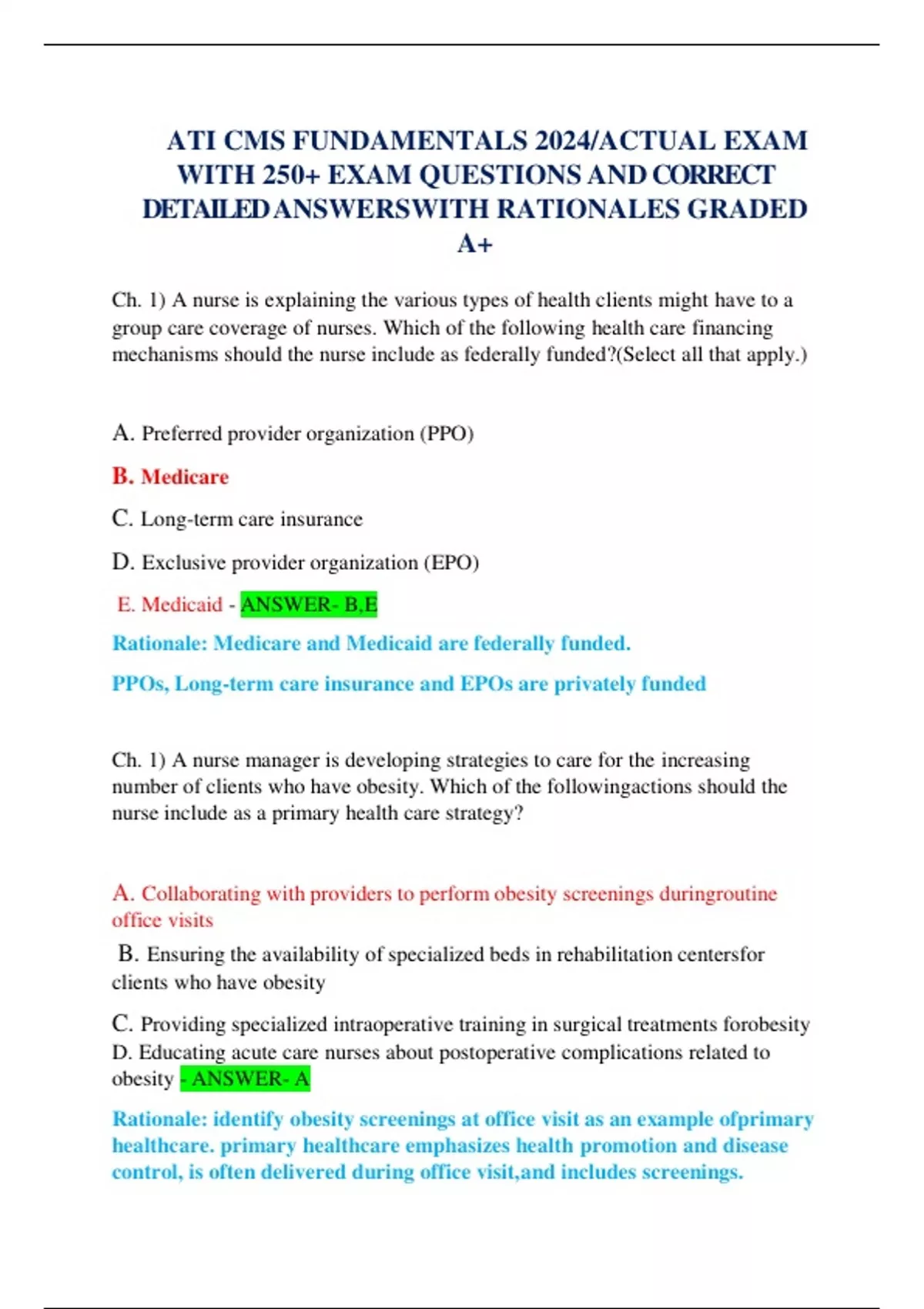 ATI CMS FUNDAMENTALS 2024/ACTUAL EXAM WITH 250+ EXAM QUESTIONS AND CORRECT DETAILED ANSWERS WITH RATIONALES GRADED A+