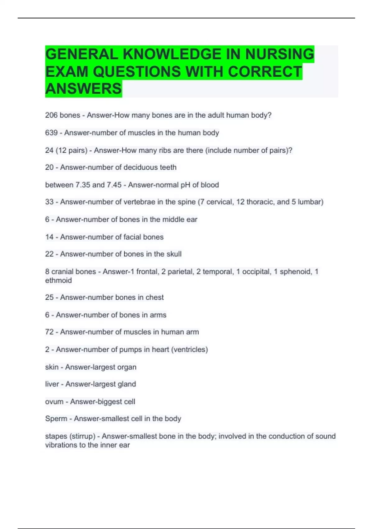 206 bones - Answer-How many bones are in the adult human body?