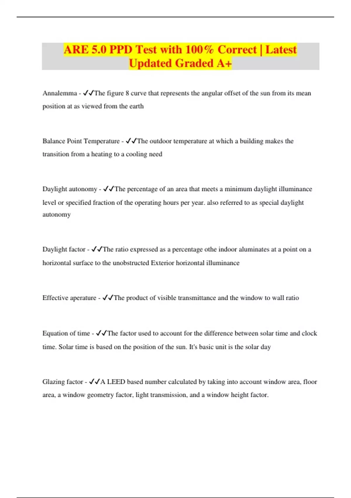 ARE 5.0 PPD Test with 100% Correct | Latest Updated Graded A+