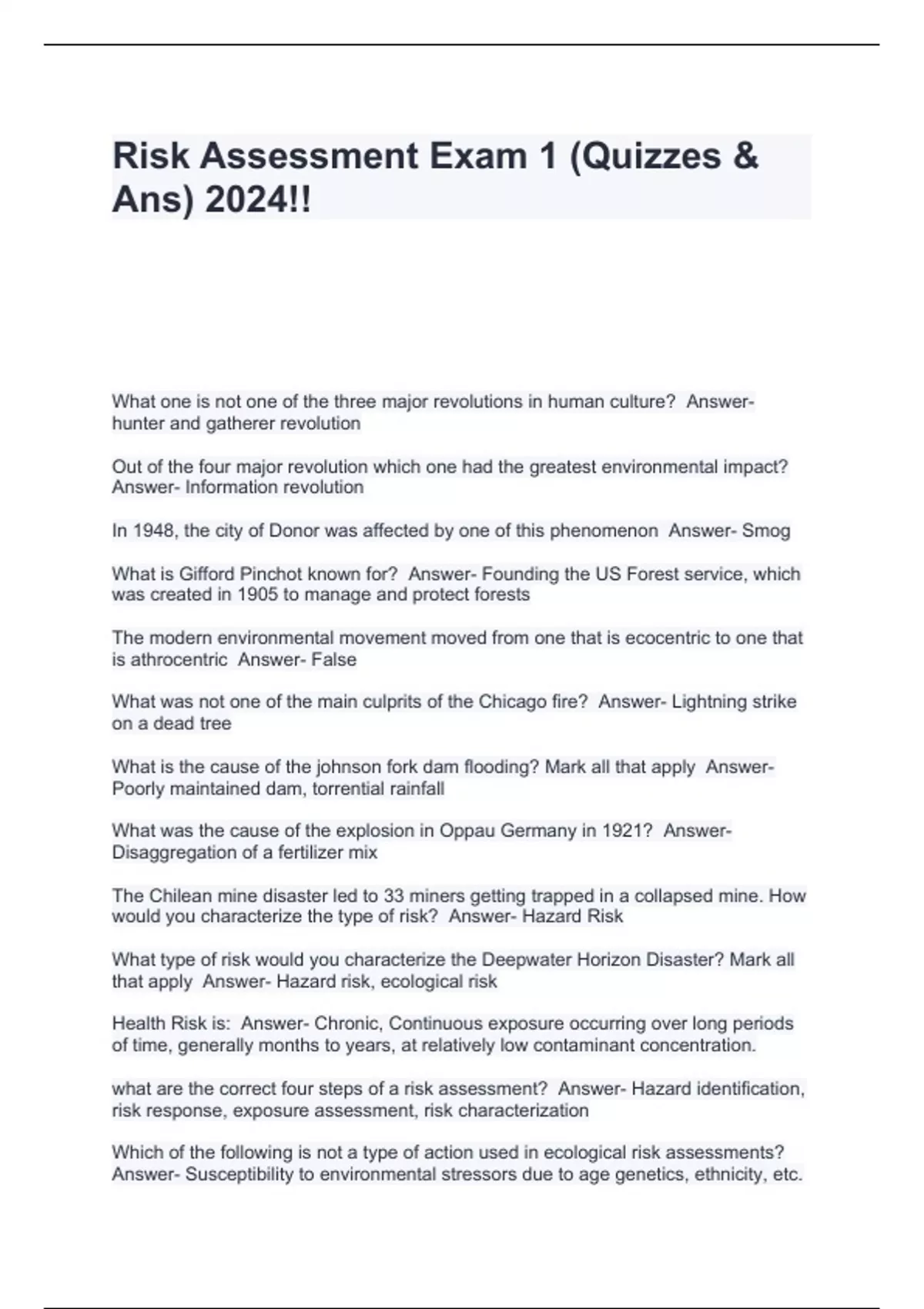 Risk Assessment Exam 1 (Quizzes & Ans) 2024!!
