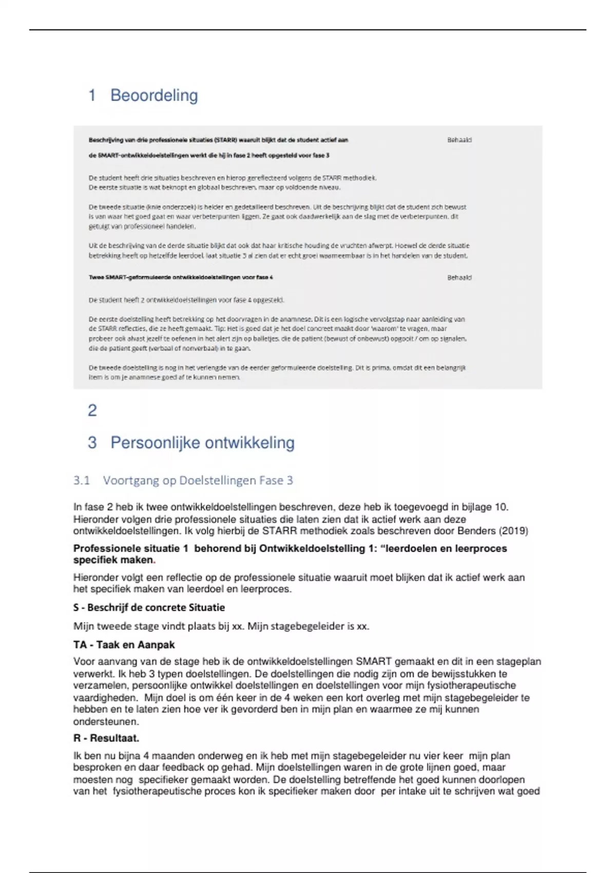 ontwikkeldoelstellingen. Ik volg hierbij de STARR methodiek zoals beschreven door Benders (2019)