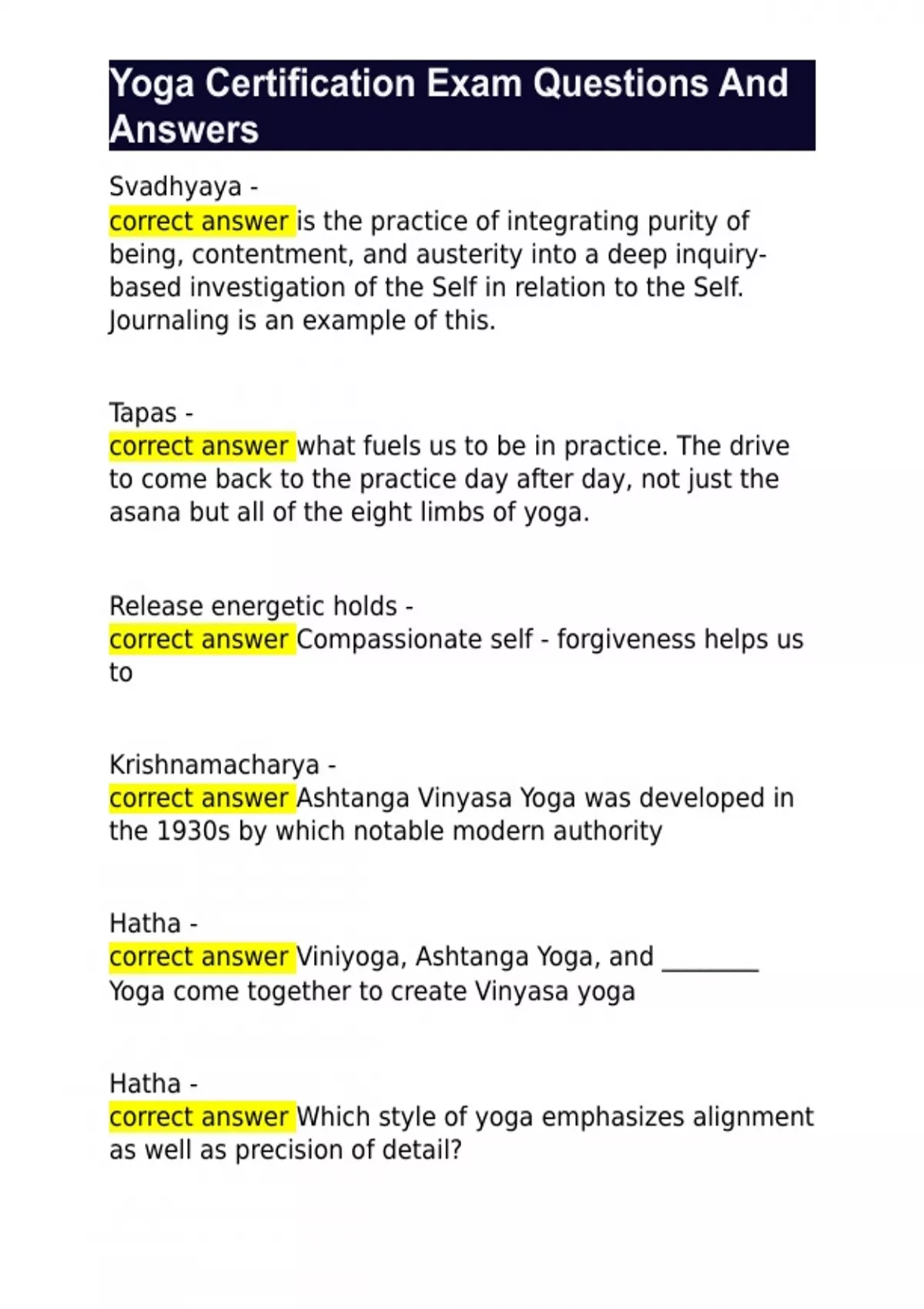 Yoga Certification Exam Questions And Answers
