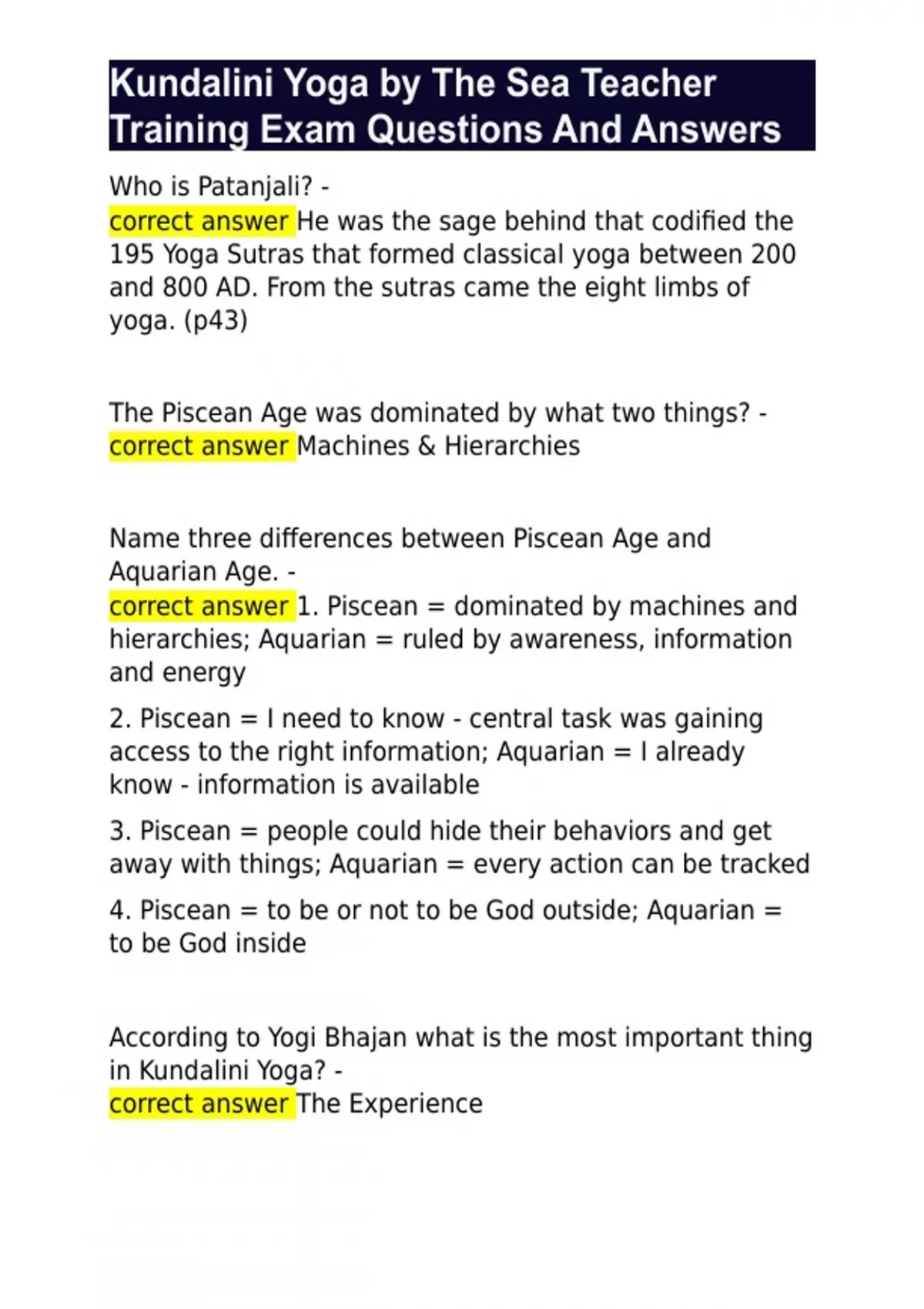 Kundalini Yoga by The Sea Teacher Training Exam Questions And Answers