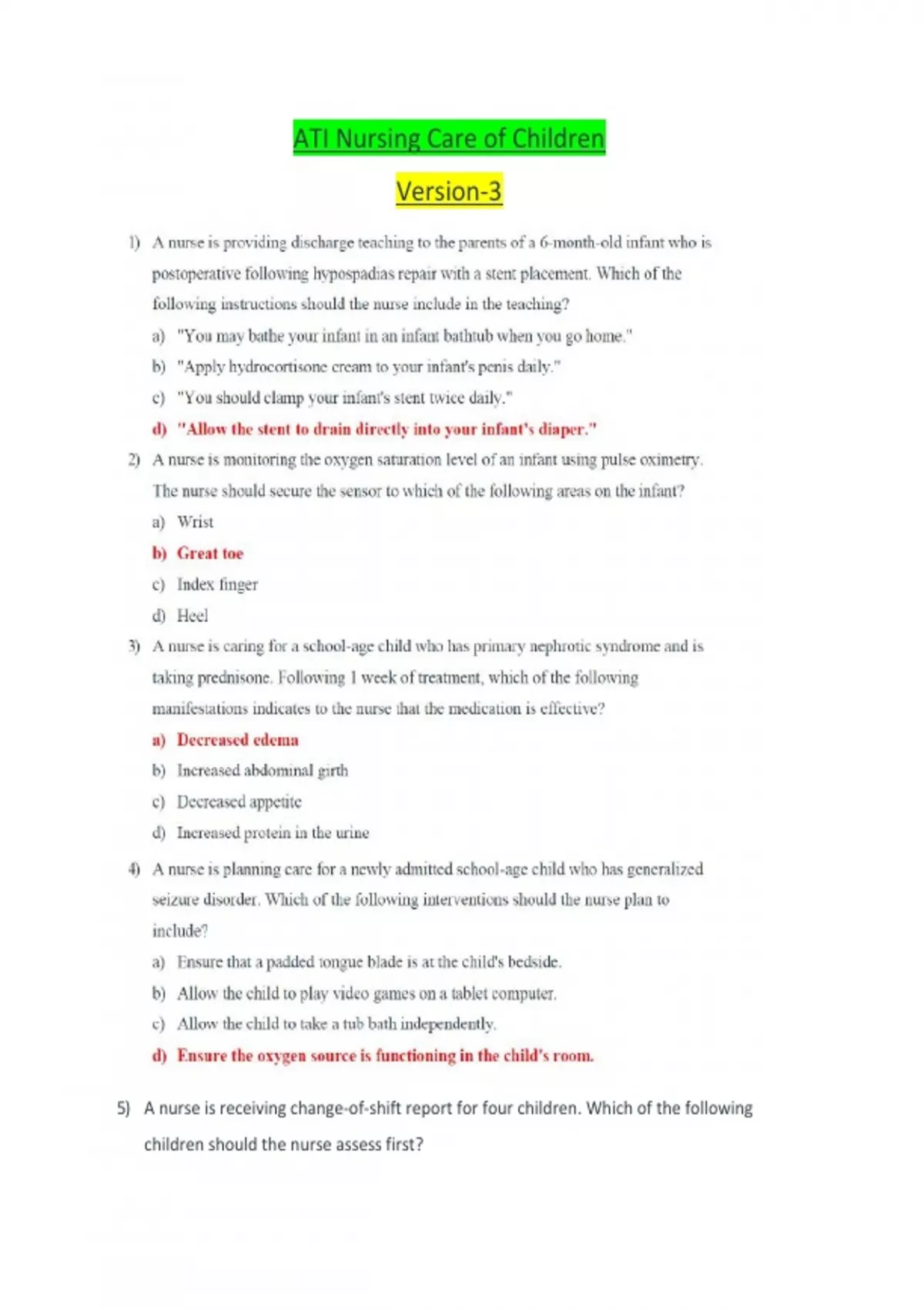 ATI Nursing Care of ChildrenATI Nursing Care of ChildrenATI Nursing Care of ChildrenATI Nursing Care of ChildrenATI Nursing Care of ChildrenATI Nursing Care of Children