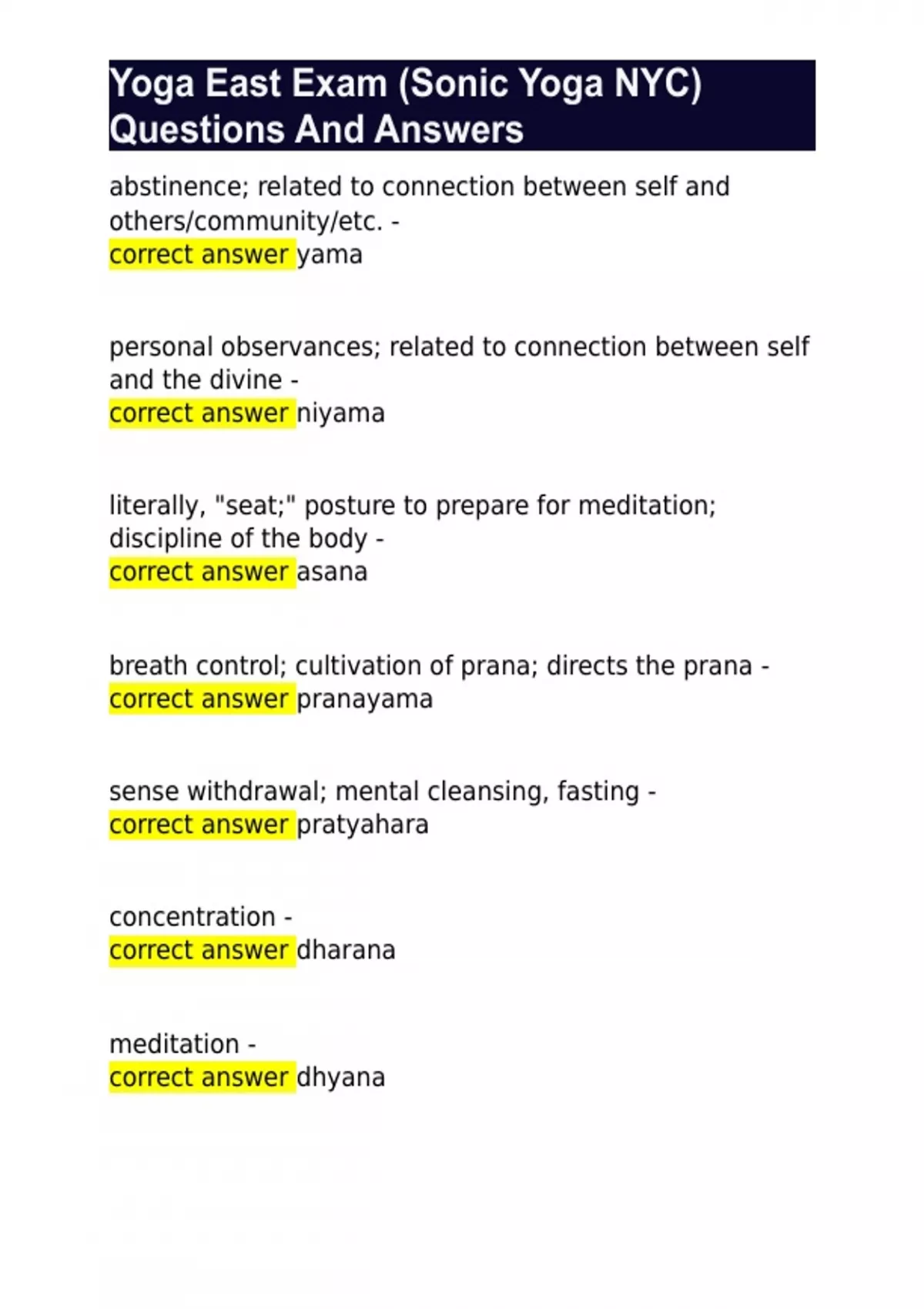 Yoga East Exam (Sonic Yoga NYC) Questions And Answers