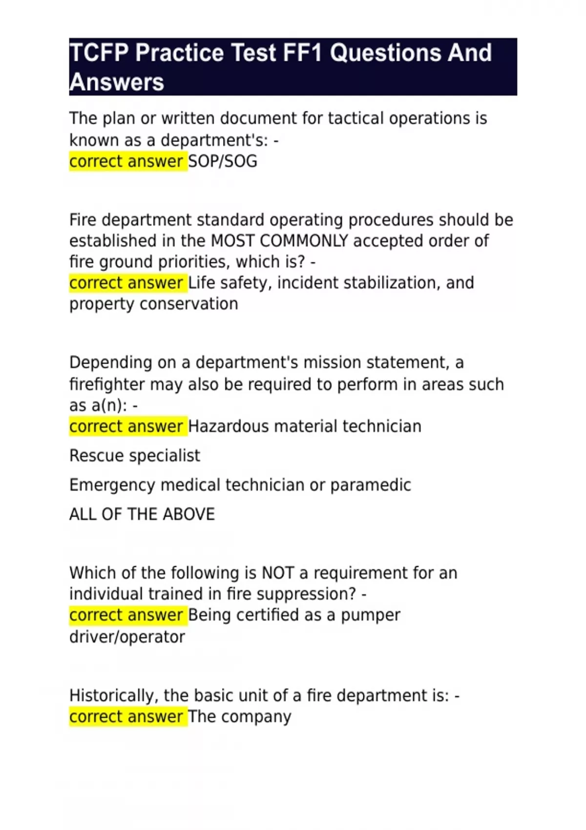 TCFP Practice Test FF1 Questions And Answers