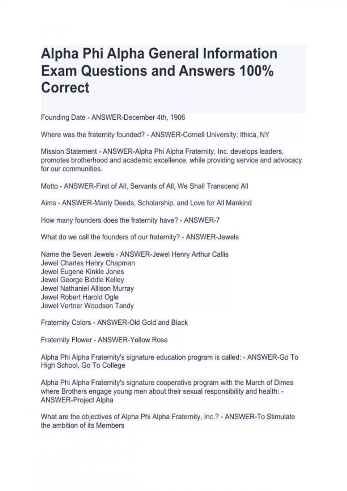 Alpha Phi Alpha General Information Exam Questions and Answers 100% Correct