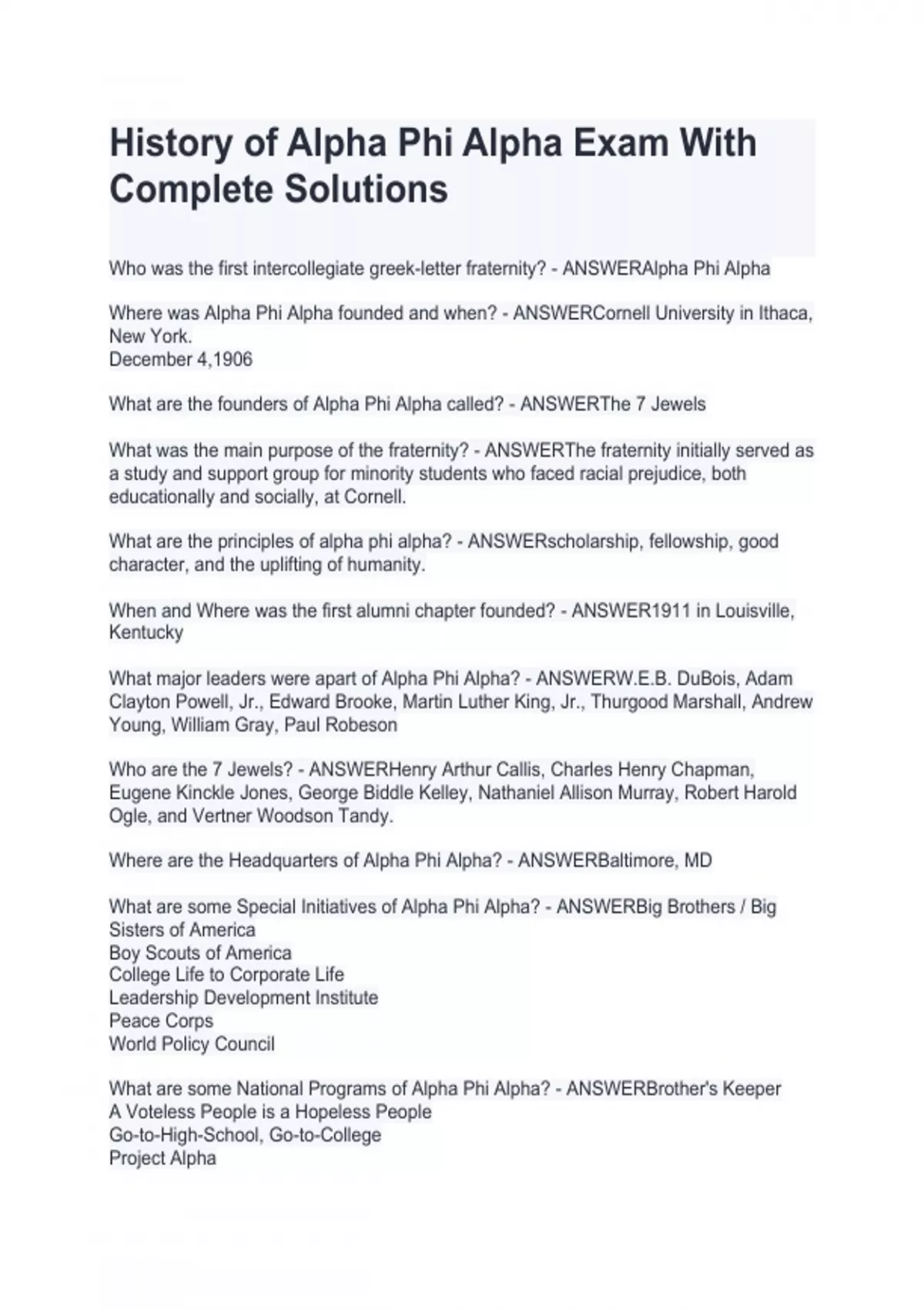 history of alpha phi alpha exam with complete solu