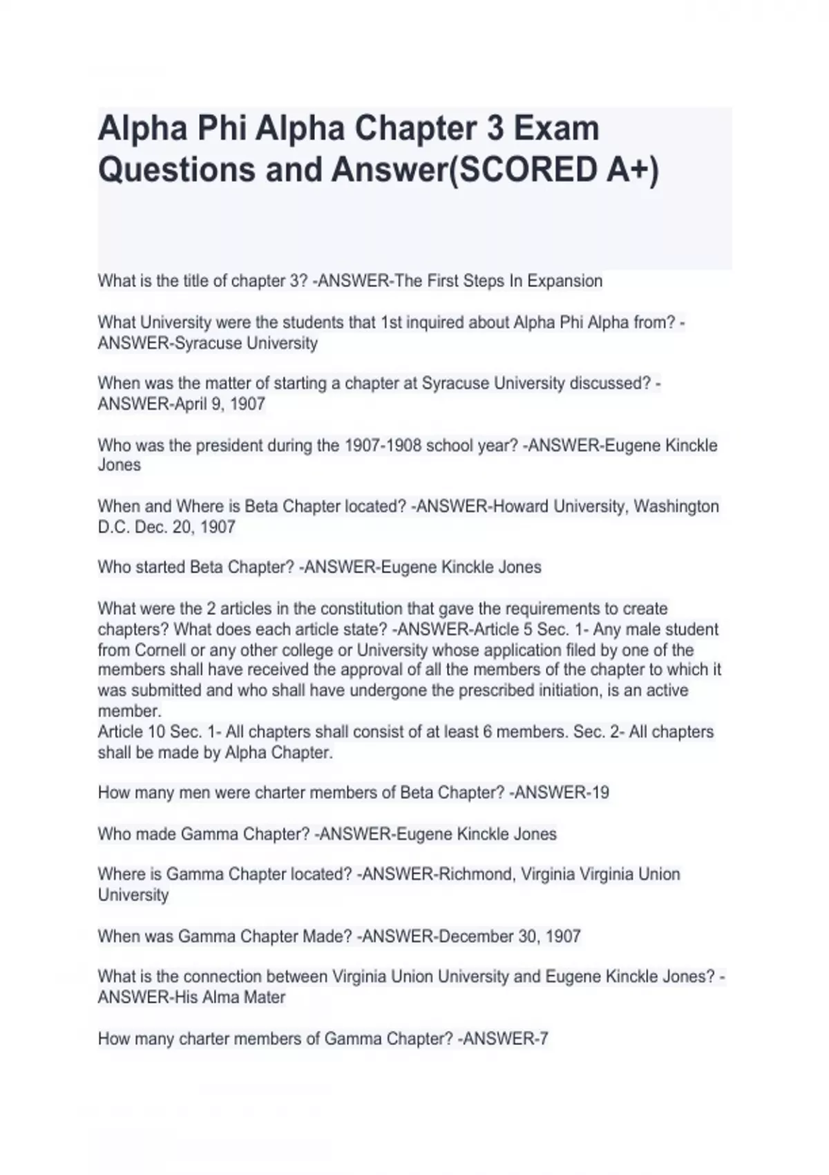 Questions and Answer(SCORED A+)