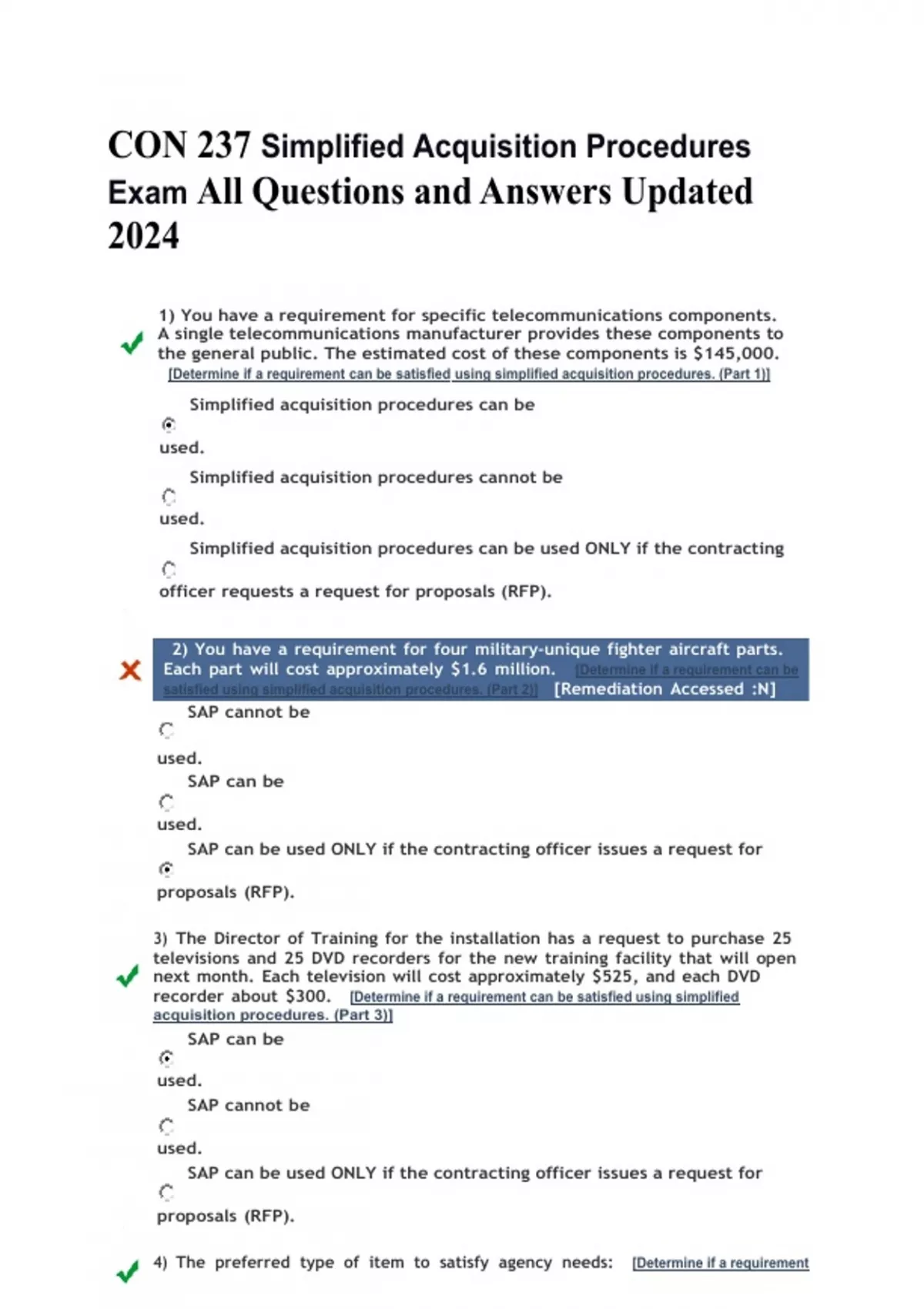 CON 237 Simplified Acquisition Procedures Exam All Questions and Answers Updated 2024