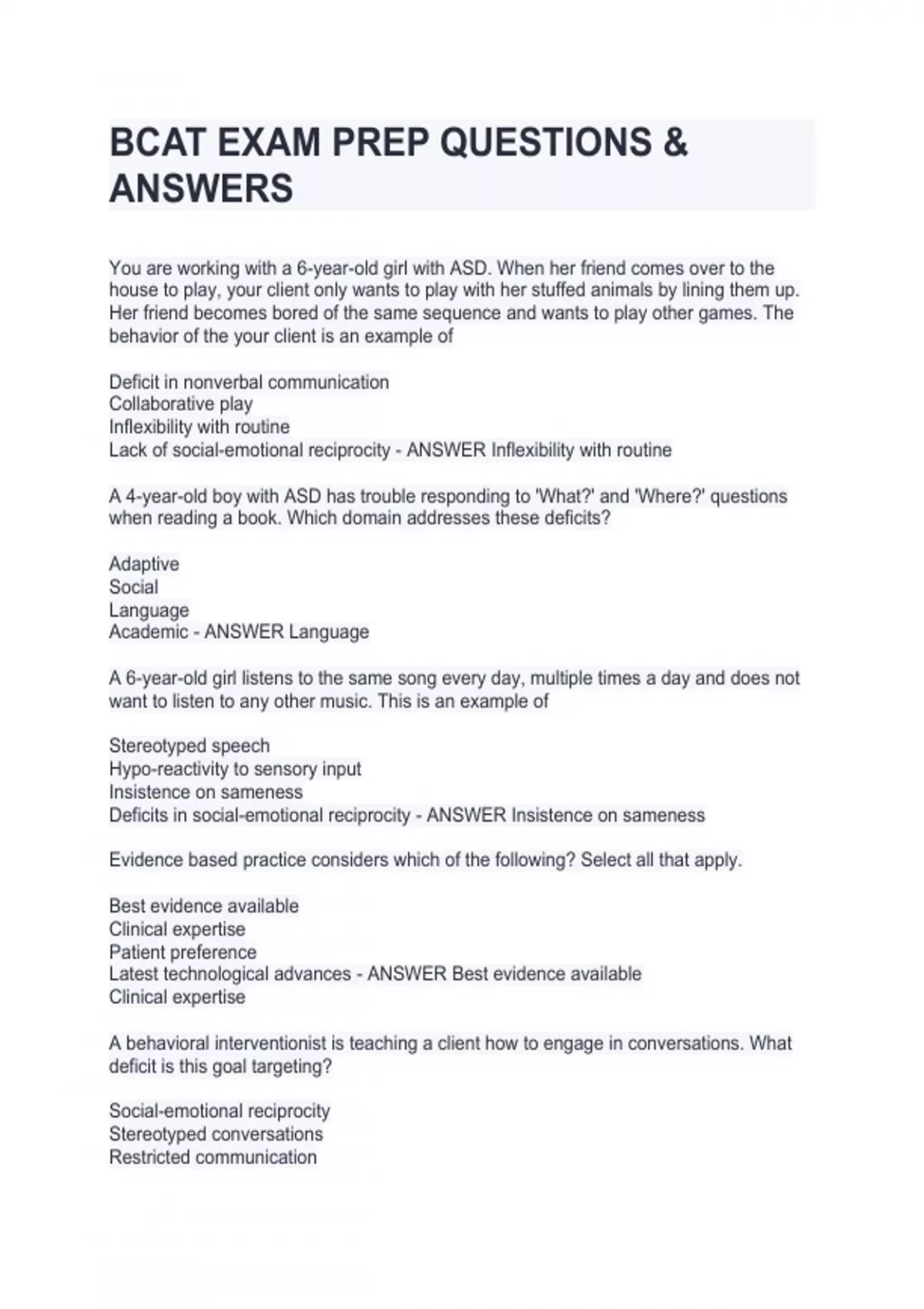 BCAT EXAM PREP QUESTIONS & ANSWERS