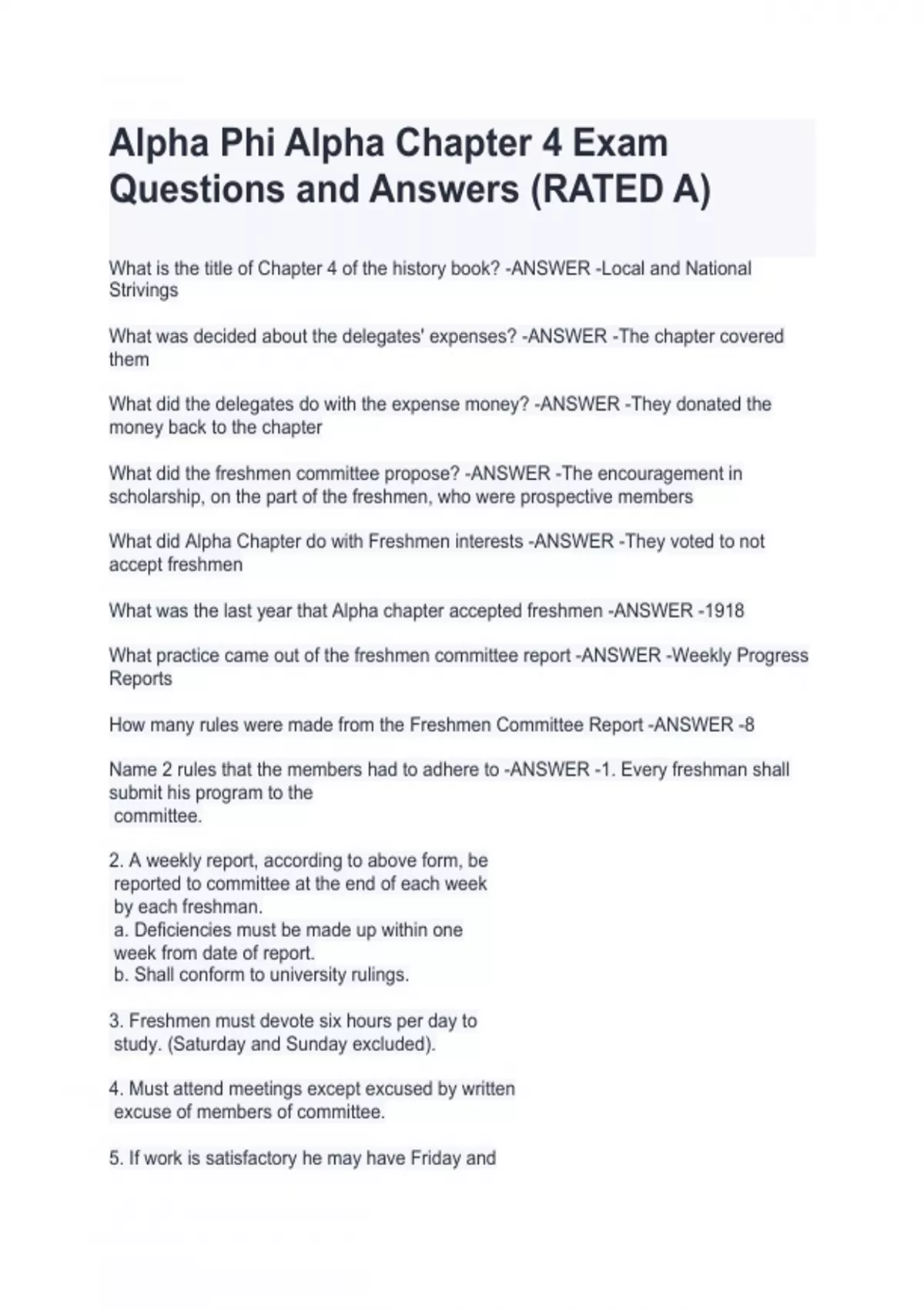 Alpha Phi Alpha Chapter 4 Exam Questions and Answers (RATED A)
