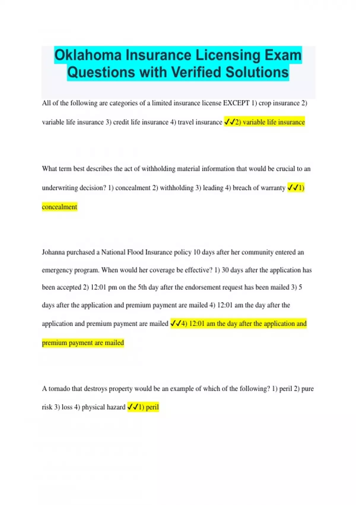 Oklahoma Insurance Licensing Exam Questions with Verified Solutions