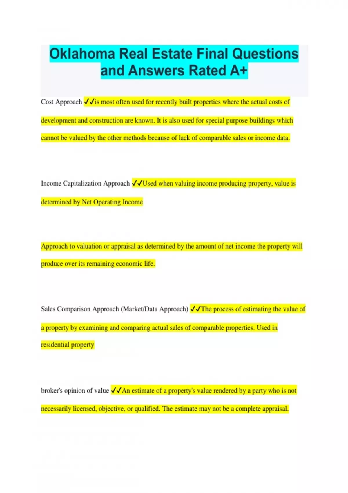 Oklahoma Real Estate Final Questions and Answers Rated A+