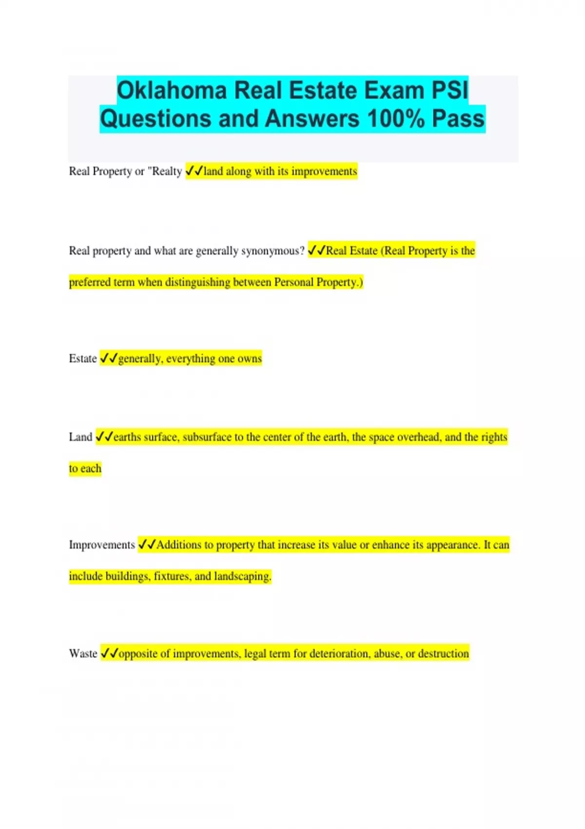 Oklahoma Real Estate Exam PSI Questions and Answers 100% Pass