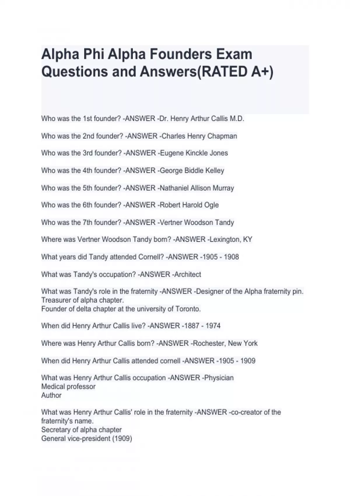 Alpha Phi Alpha Founders Exam Questions and Answers(RATED A+)
