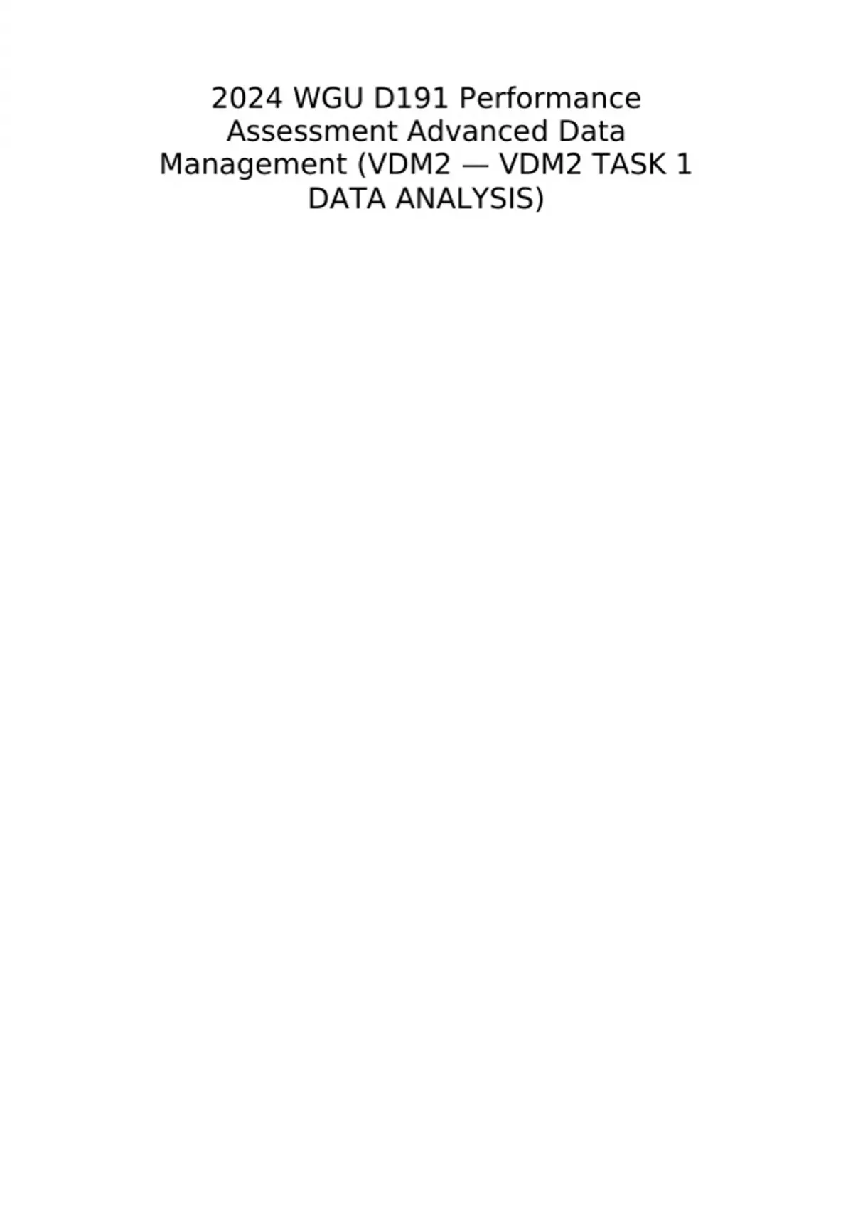 2024 WGU D191 Performance Assessment Advanced Data Management (VDM2 — VDM2 TASK 1 DATA ANALYSIS)