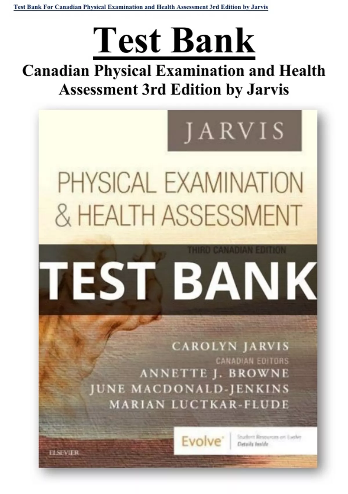 Test Bank For Canadian Physical Examination and Health Assessment 3rd Edition by Jarvis All Chapters (1-31) | A+ ULTIMATE GUIDE 2019