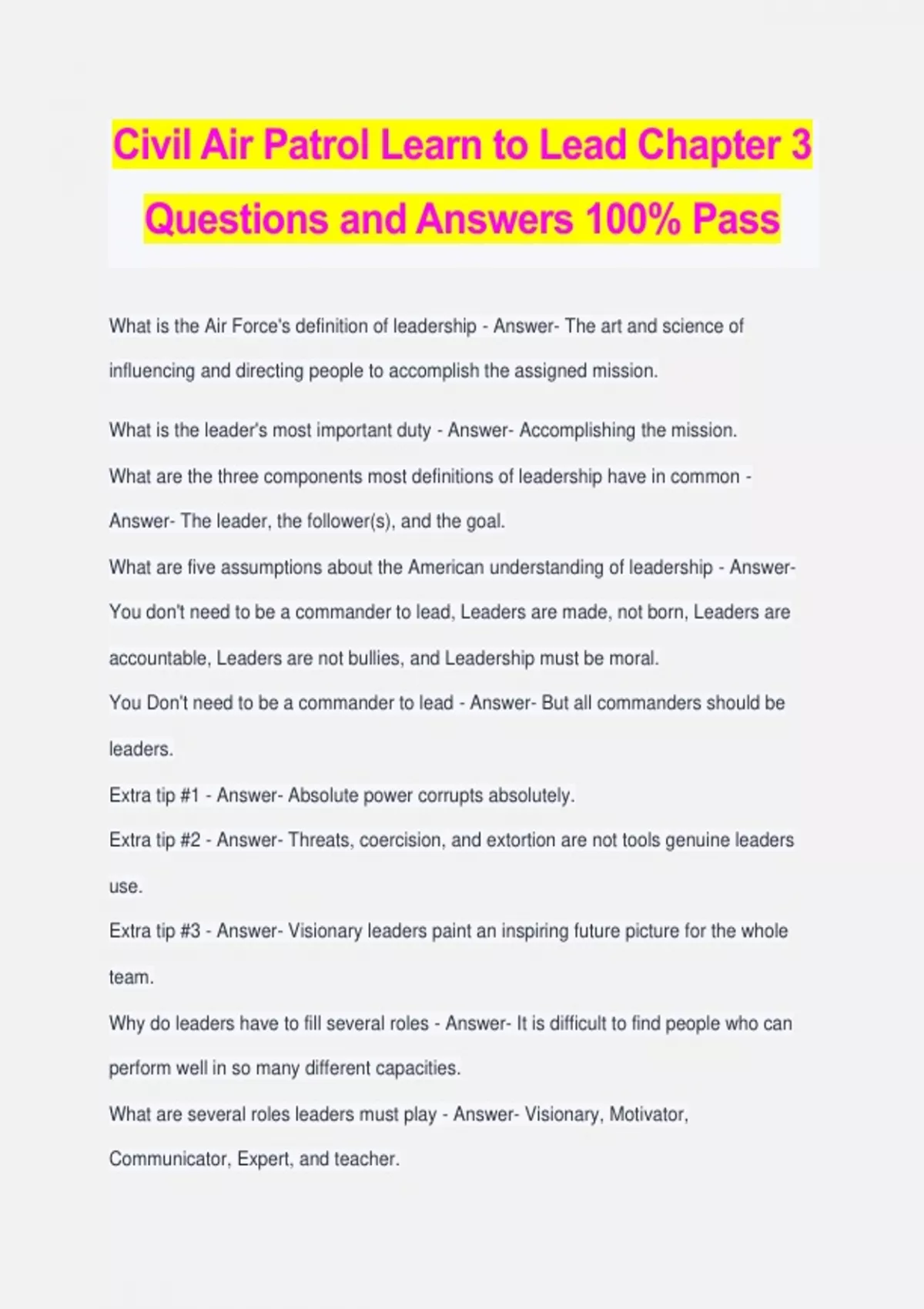 Civil Air Patrol Learn to Lead Chapter 3 Questions and Answers 100% Pass