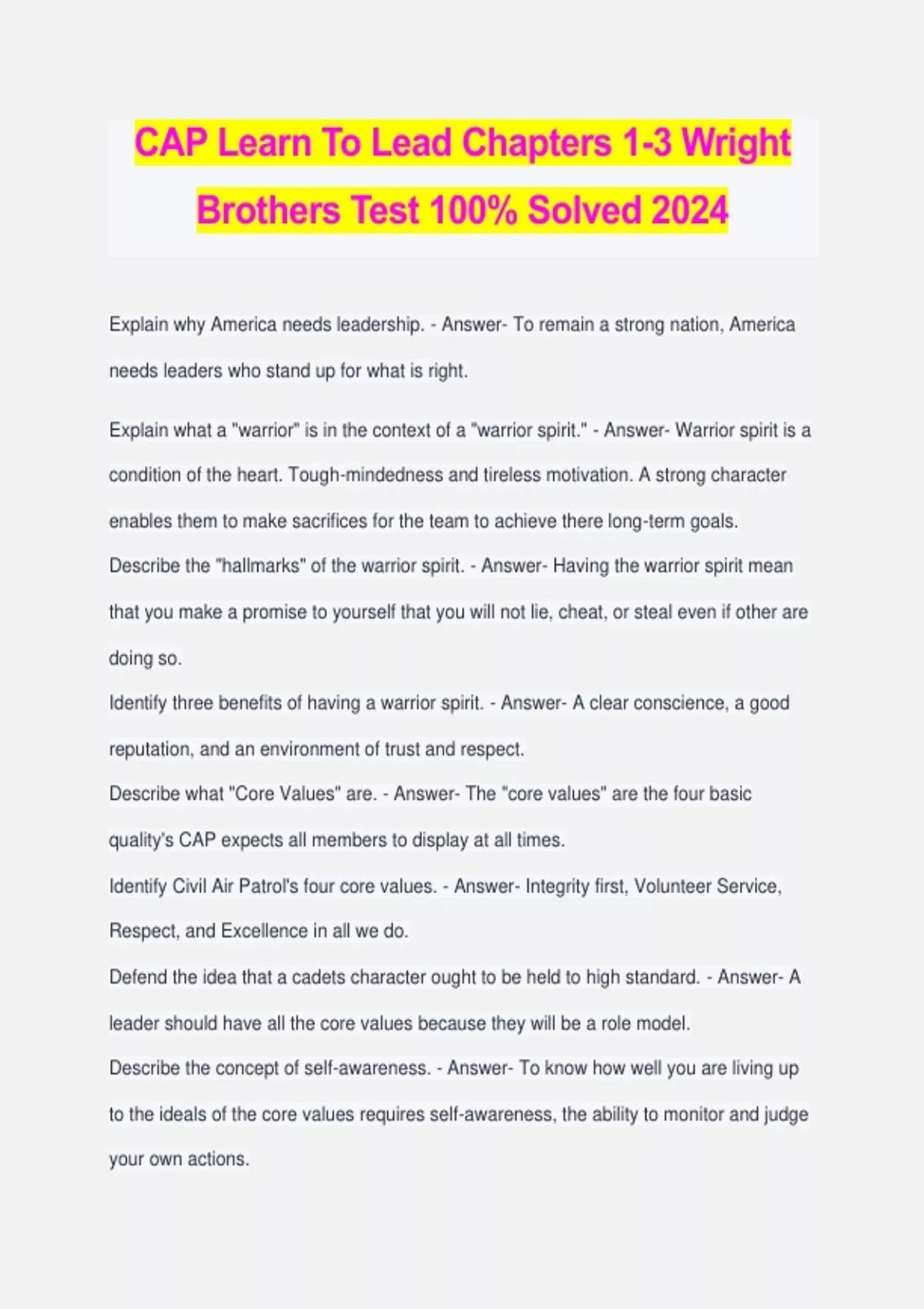 CAP Learn To Lead Chapters 1-3 Wright Brothers Test 100% Solved 2024