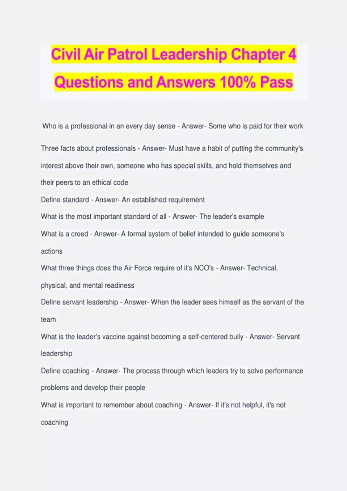 Civil Air Patrol Leadership Chapter 4 Questions and Answers 100% Pass