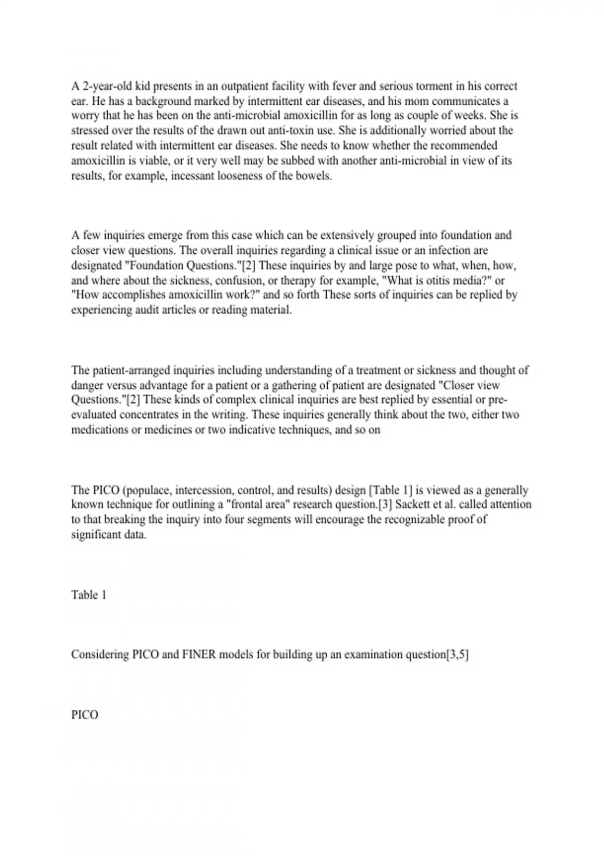 NURS 6052 Module 3 Discussion: Searching Databases Description: When you decide to purchase a new car, you first decide what is important to you. If mileage and dependability are the important factors, you will search for data focused more on these factors and less on color options and sound systems. The same holds true when searching for research evidence to guide your clinical inquiry and professional decisions. Developing a formula for an answerable, researchable question that addresses your need will make the search process much more effective. One such formula is the PICO(T) format. In this Discussion, you will transform a clinical inquiry into a searchable question in PICO(T) format, so you can search the electronic databases more effectively and efficiently. You will share this PICO(T) question and examine strategies you might use to increase the rigor and effectiveness of a database search on your PICO(T) question.