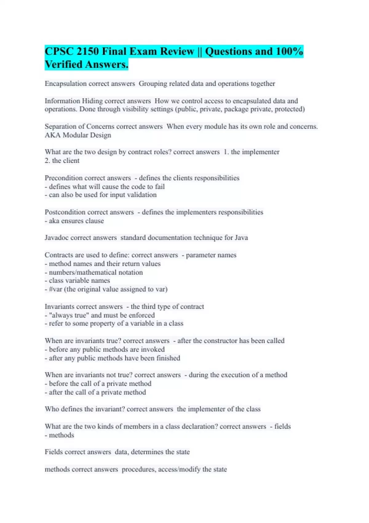 CPSC 2150 Final Exam Review || Questions and 100% Verified Answers.