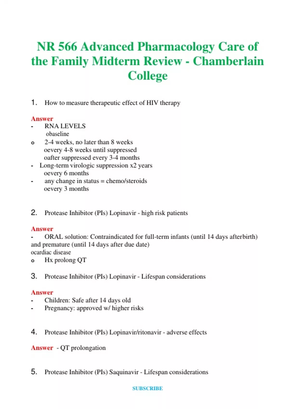 NR 566 (Latest 2024 / 2025) Advanced Pharmacology Care of the Family Midterm Review - Chamberlain College Questions and Answers (Verified Answers)
