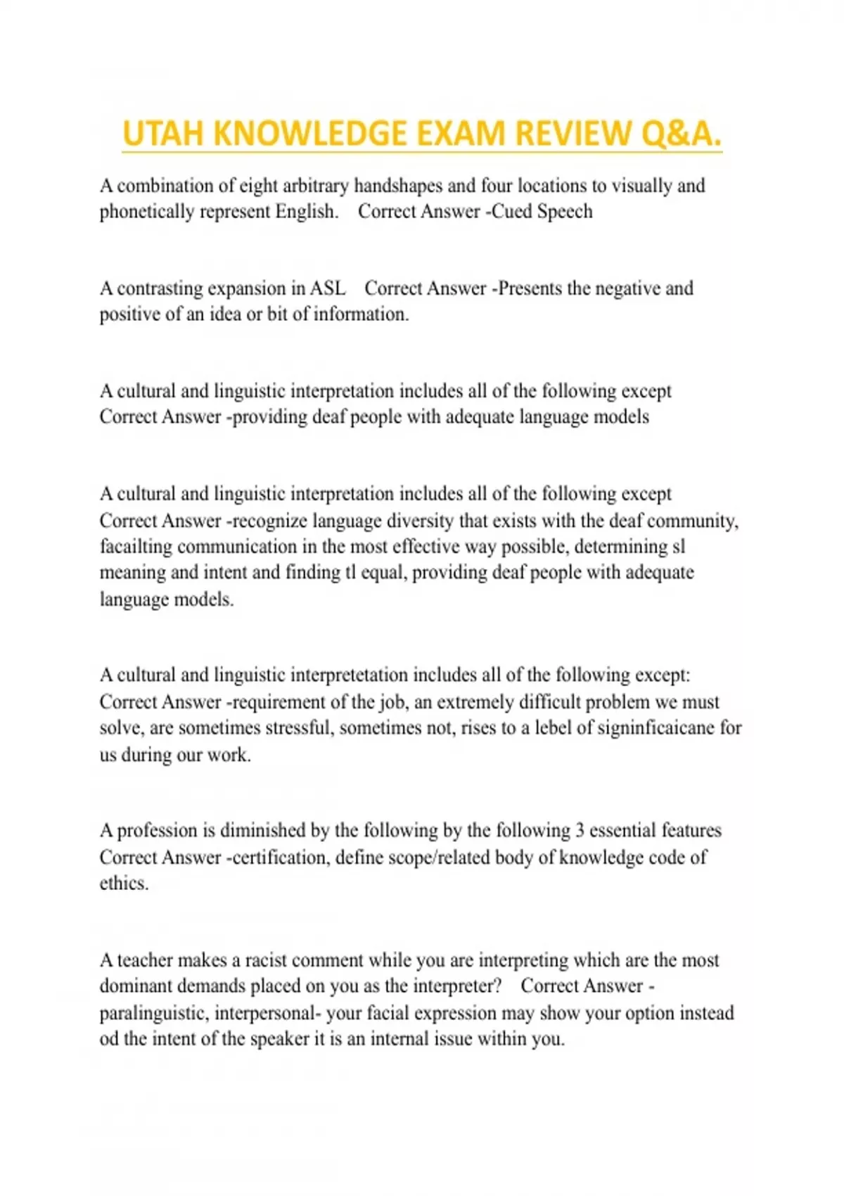 UTAH KNOWLEDGE EXAM REVIEW Q&A.