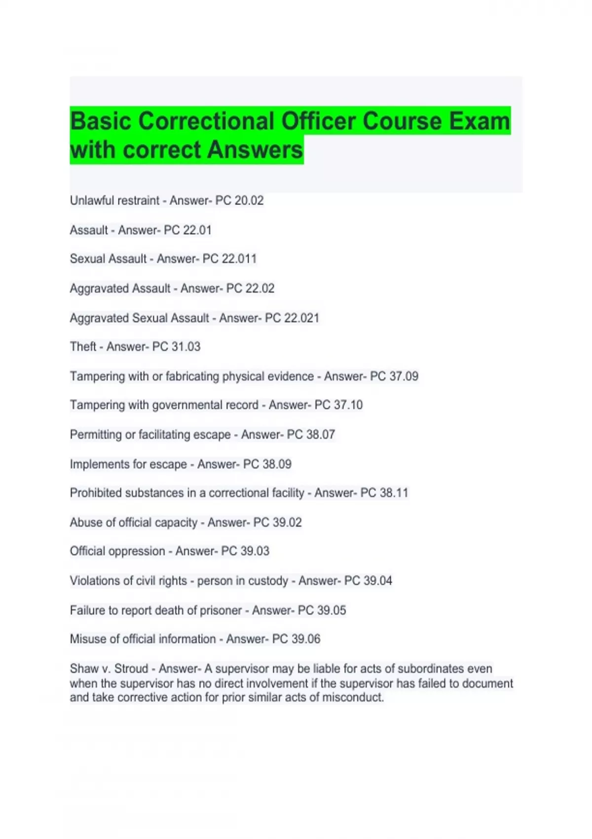 Basic Correctional Officer Course Exam with correct Answers
