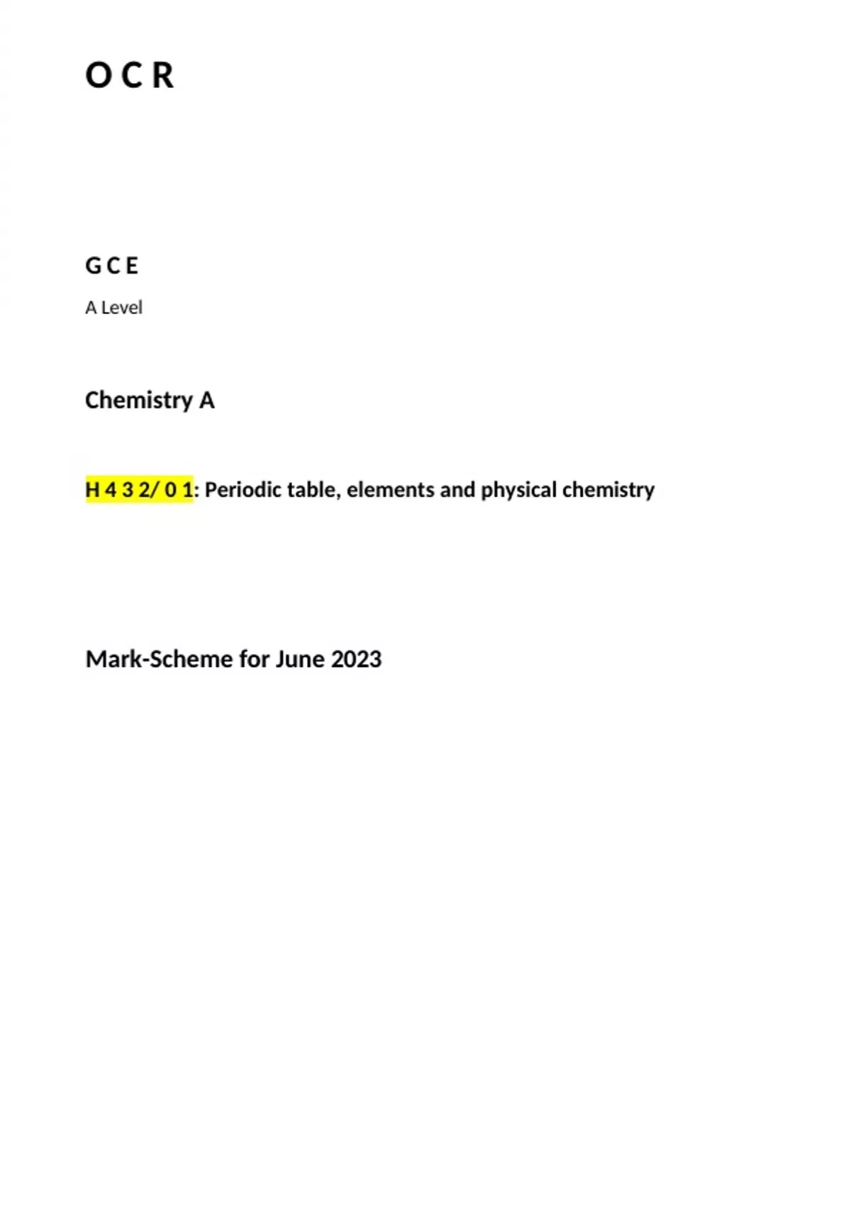 OCR A Level Chemistry A Paper 1 Mark-scheme June 202-3