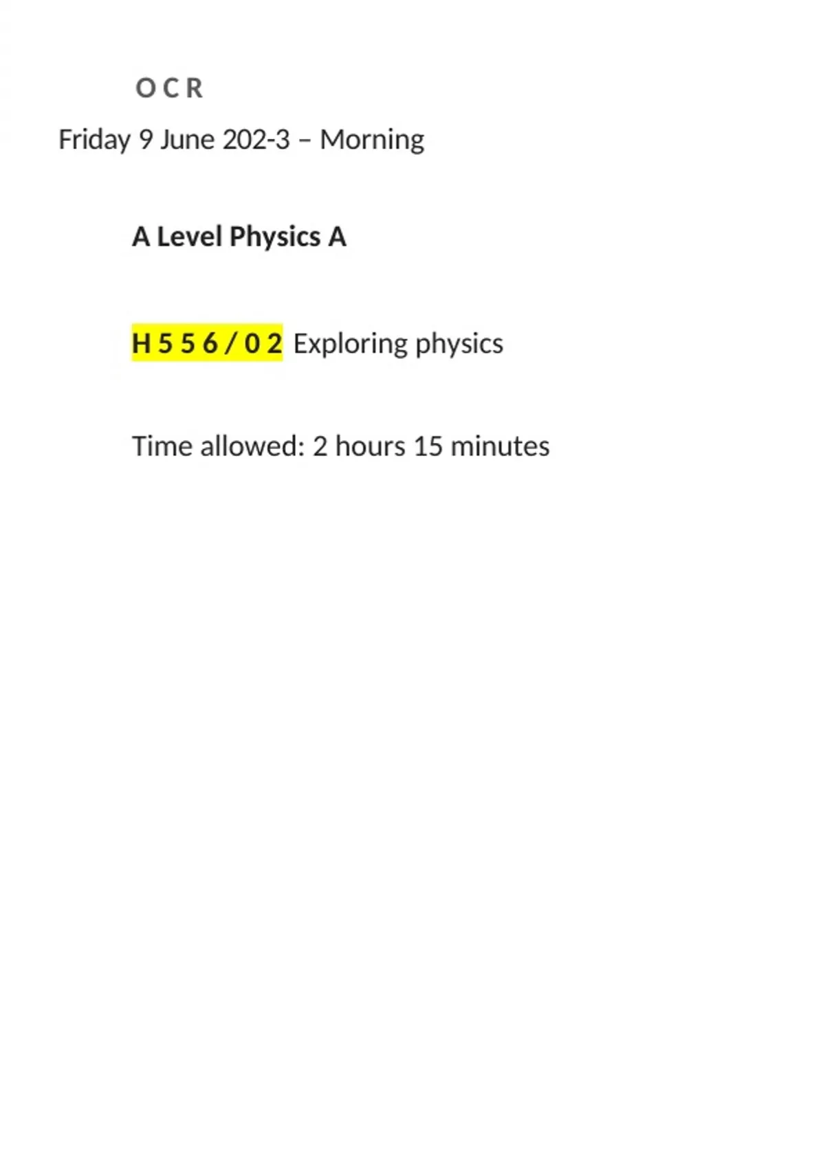 OCR AS Level PHYSICS A Paper 2 QP June 202-3
