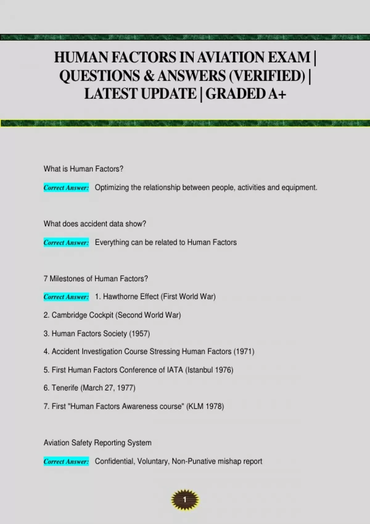 HUMAN FACTORS IN AVIATION EXAM | QUESTIONS & ANSWERS (VERIFIED) | LATEST UPDATE | GRADED A+