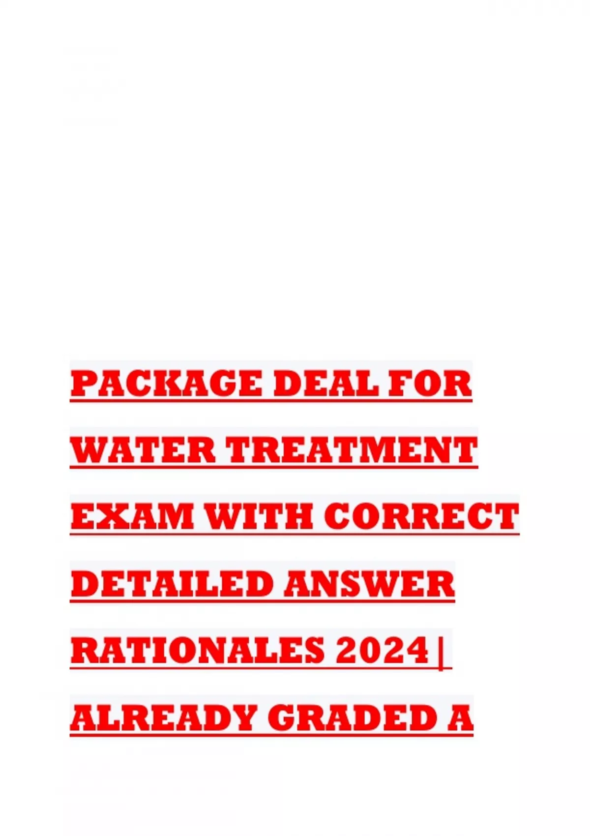 PACKAGE DEAL FOR WATER TREATMENT EXAM WITH CORRECT DETAILED ANSWER RATIONALES 2024| ALREADY GRADED A