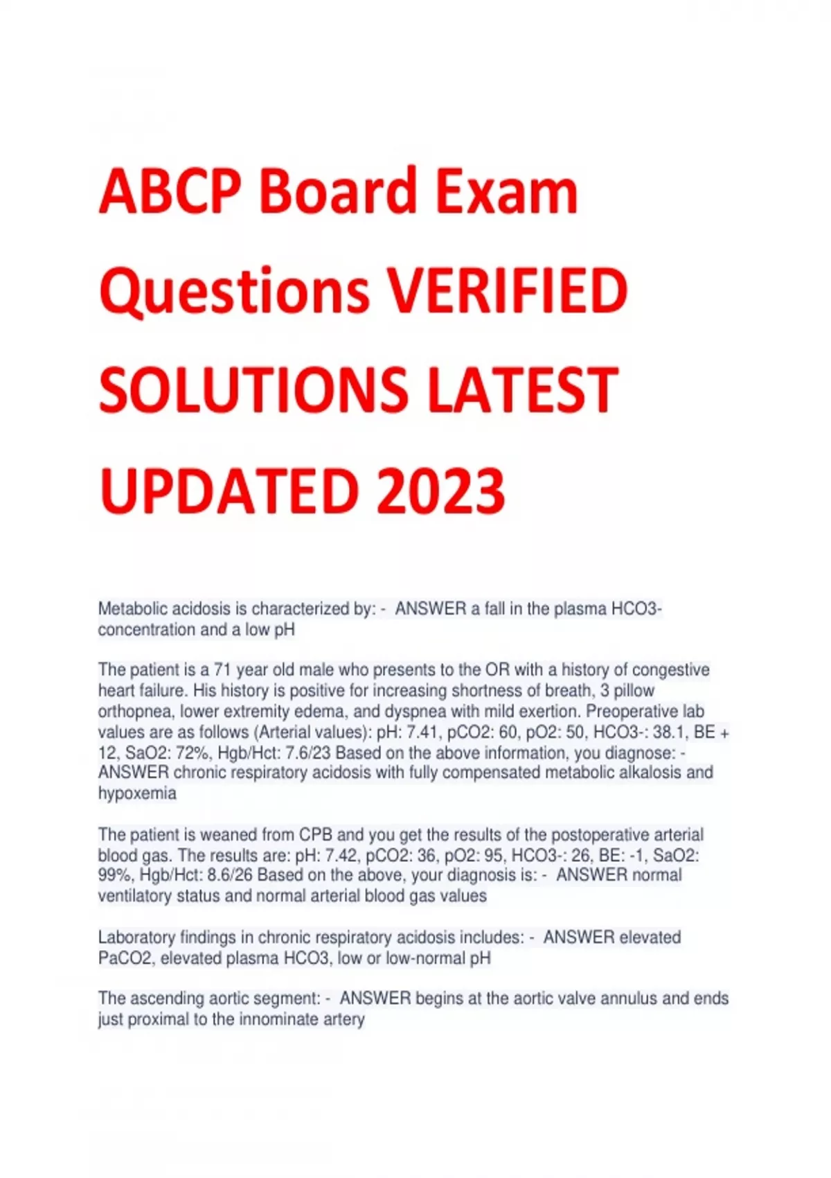 ABCP Board Exam Questions VERIFIED SOLUTIONS LATEST UPDATED