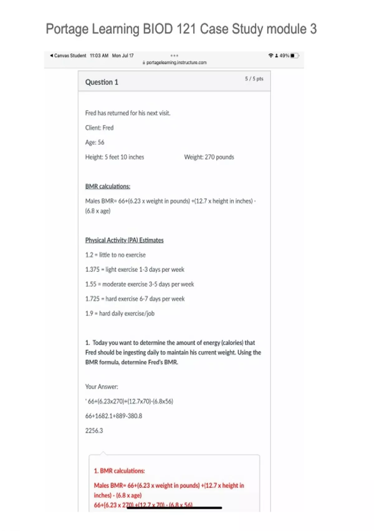Portage Learning BIOD 121 Case Study module 3 Latest Updated A+ Guide Solution