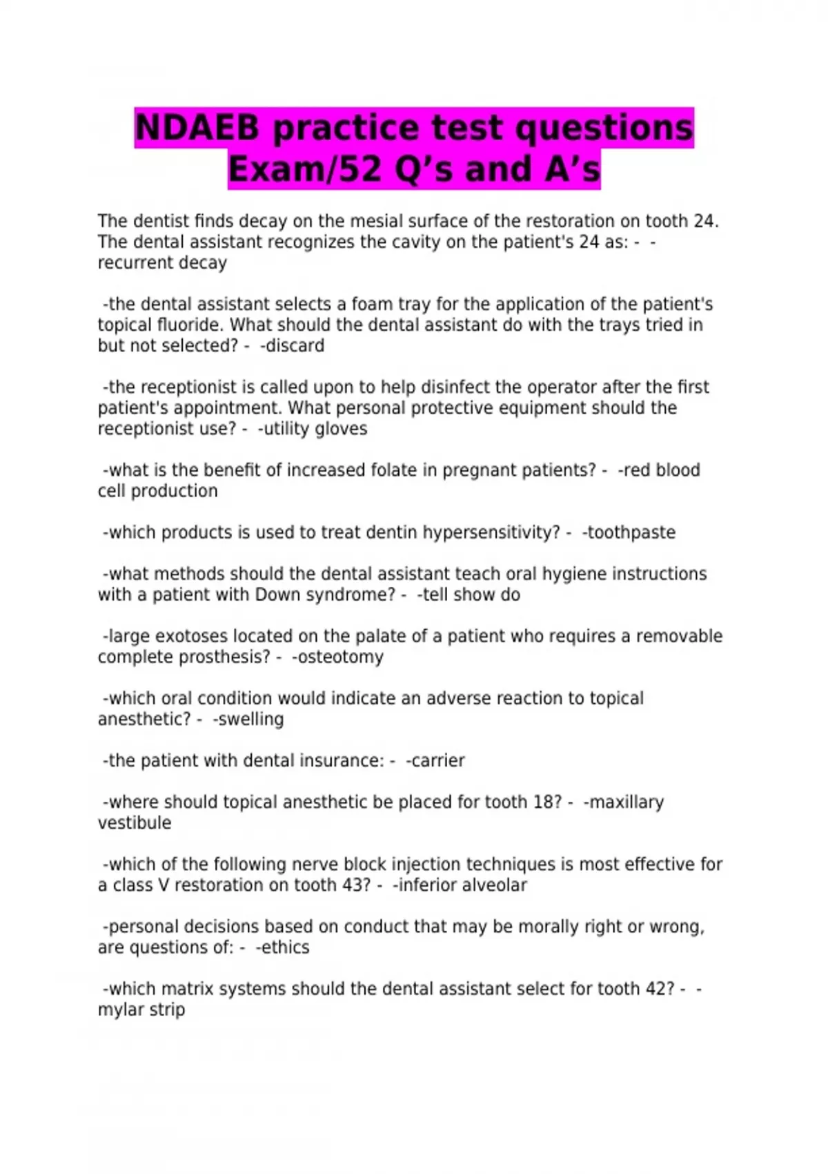 NDAEB practice test questions Exam/52 Q’s and A’s