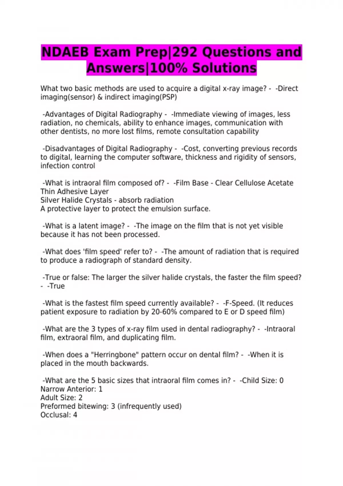 NDAEB Exam Prep|292 Questions and Answers|100% Solutions