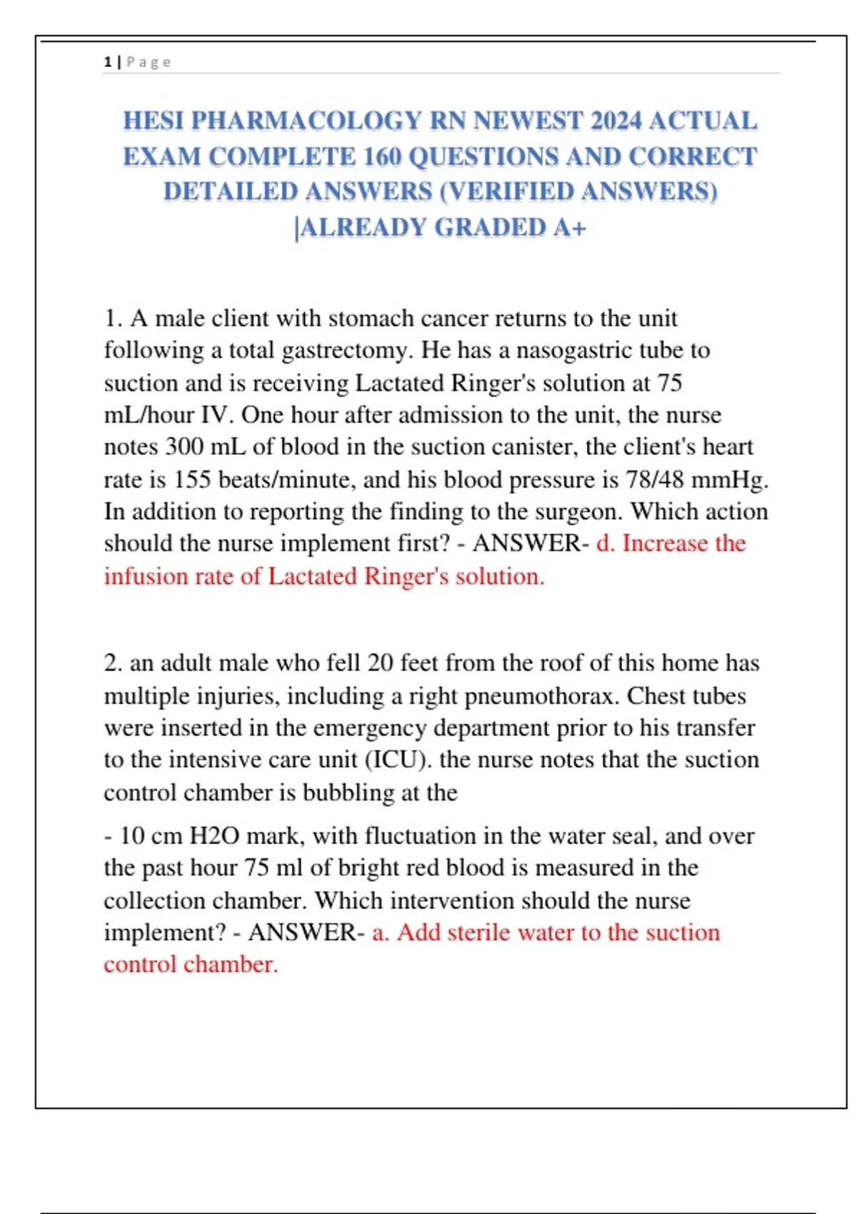 HESI PHARMACOLOGY RN NEWEST 2024 ACTUAL EXAM COMPLETE 160 QUESTIONS AND CORRECT DETAILED ANSWERS (VERIFIED ANSWERS) |ALREADY GRADED A+